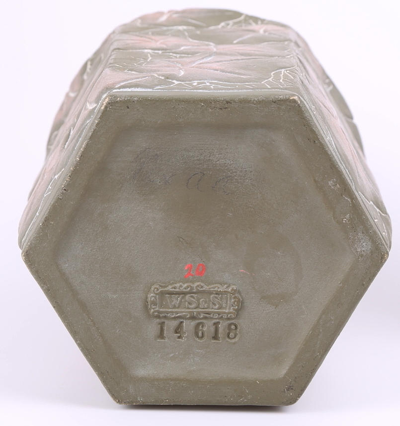 Präglad dekor av blomblad. Höjd 33 cm.