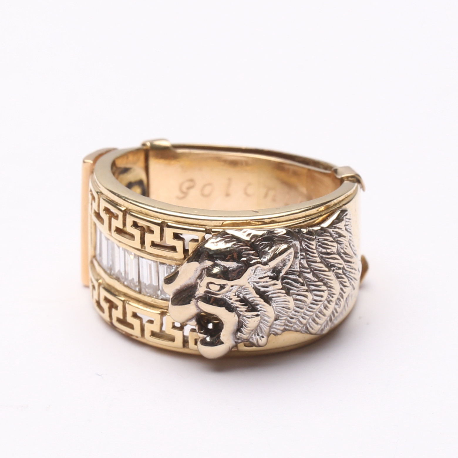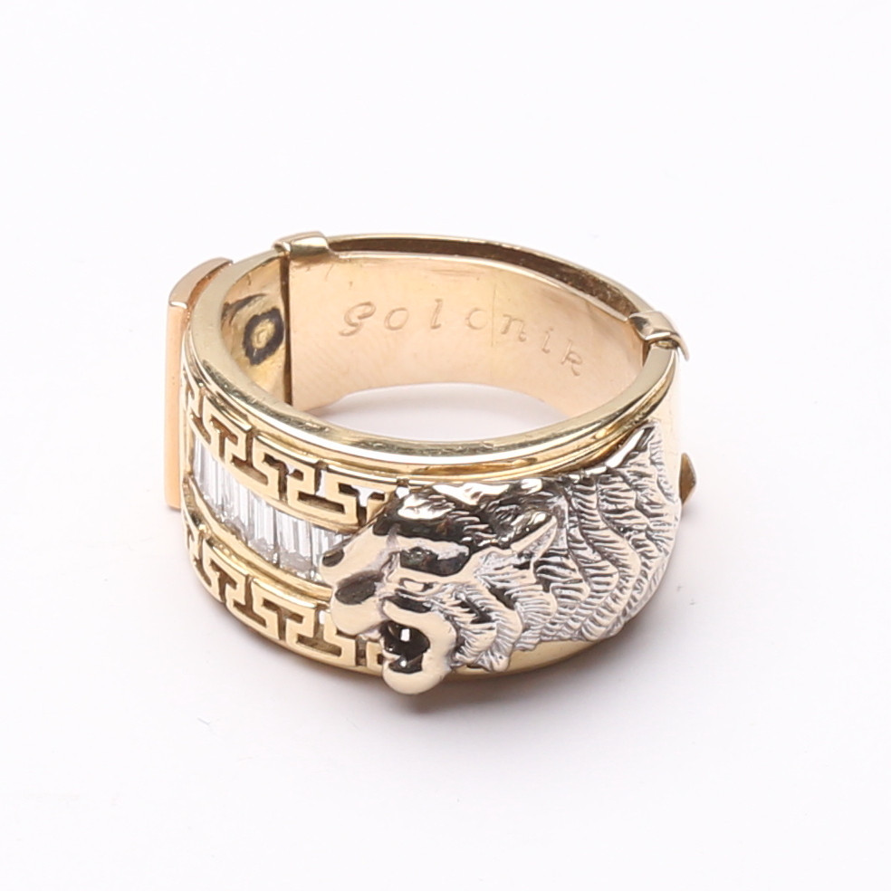 2873472. RING, guld, diamanter, lejon, 18k, ca 16,2 gram.