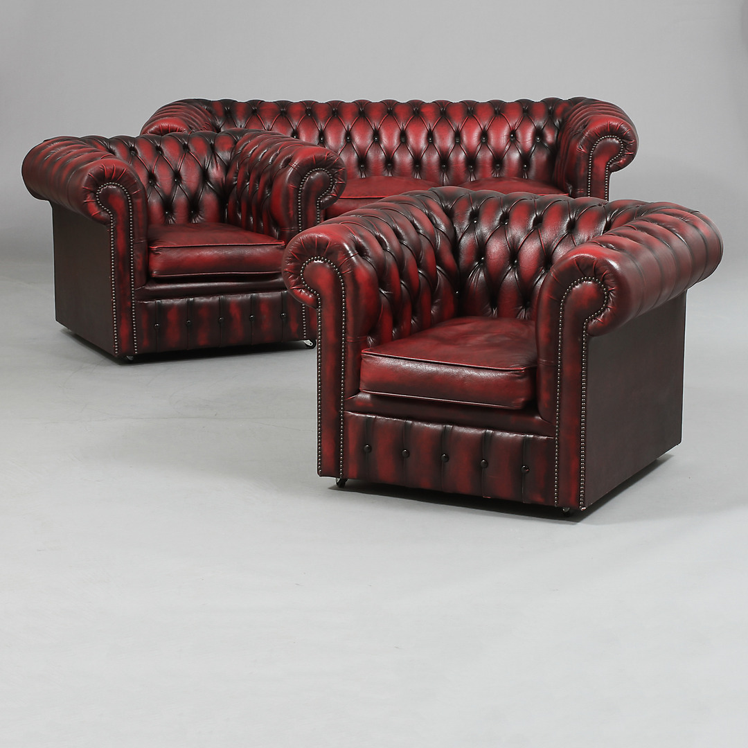287401. SOFFA samt fåtöljer, Chesterfieldmodell, 1900-talets andra hälft.