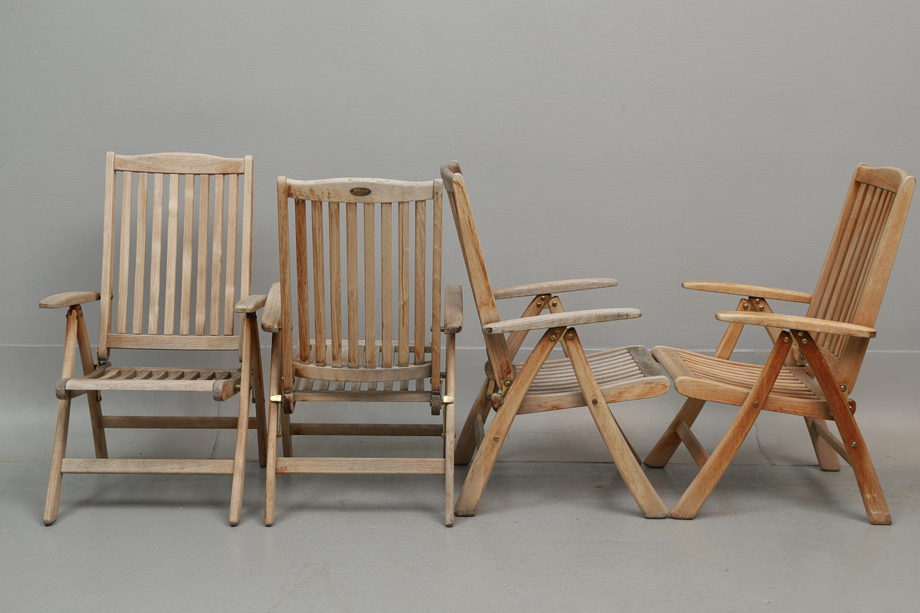 Bruksskick, viss nyansskillnad mellan de fyra stolarna pga solblekning.