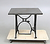 Underrede i gjutjärn. Rektangulär stenskiva. Längd 84, bredd 61, höjd 76 cm.