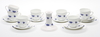 7 kaffekoppar, 8 fat, 6 assietter, ljusstake.