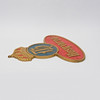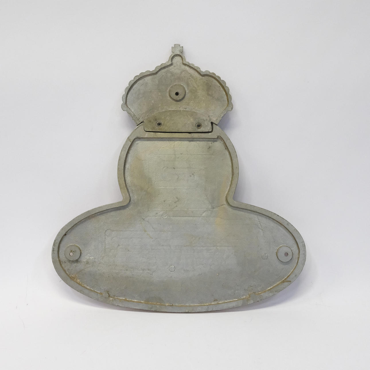 Lackerad i blått, rött och guld. Höjd 38,5cm, längd 36cm.