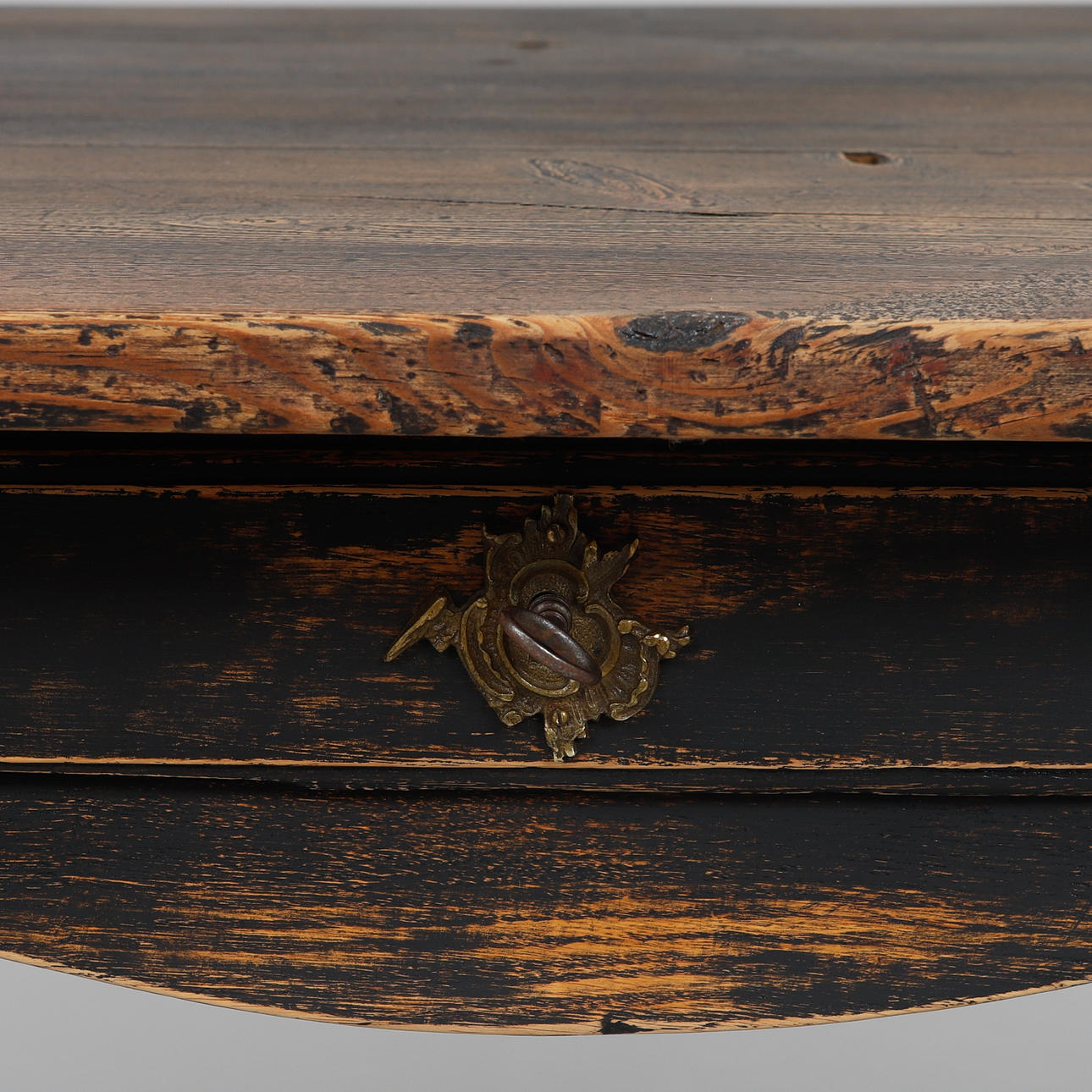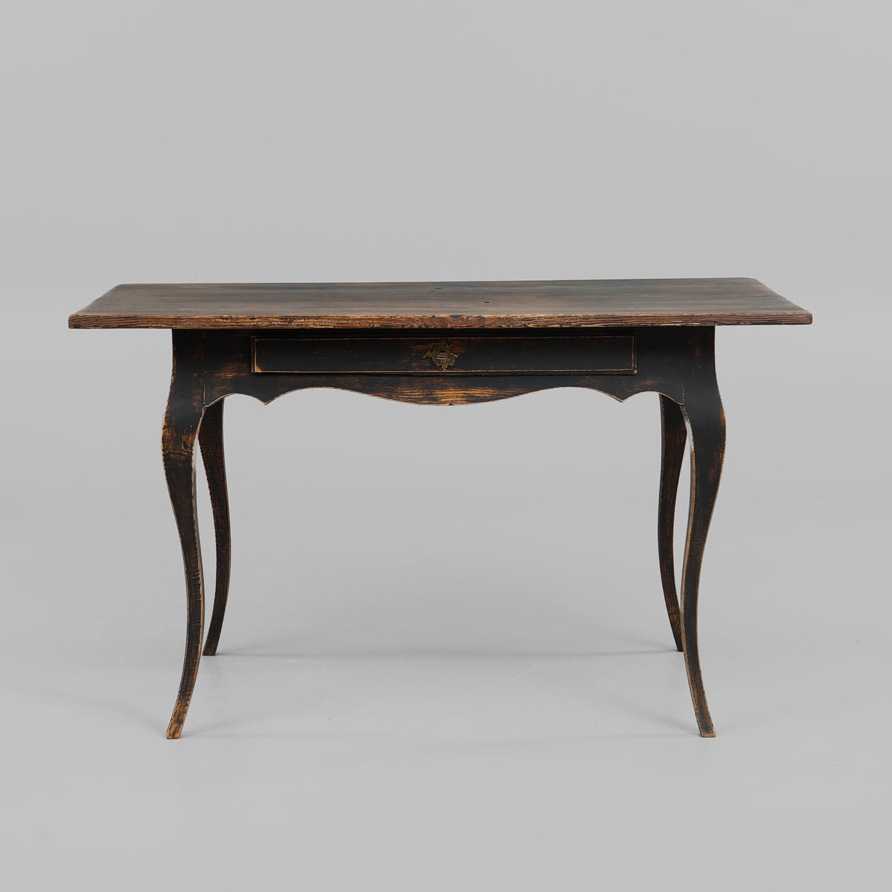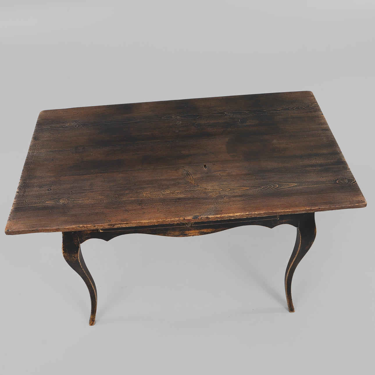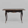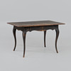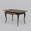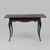Bemålat trä. Utdragslåda i sarg. Längd 127 cm, bredd 74 cm, höjd 75 cm.