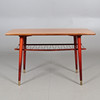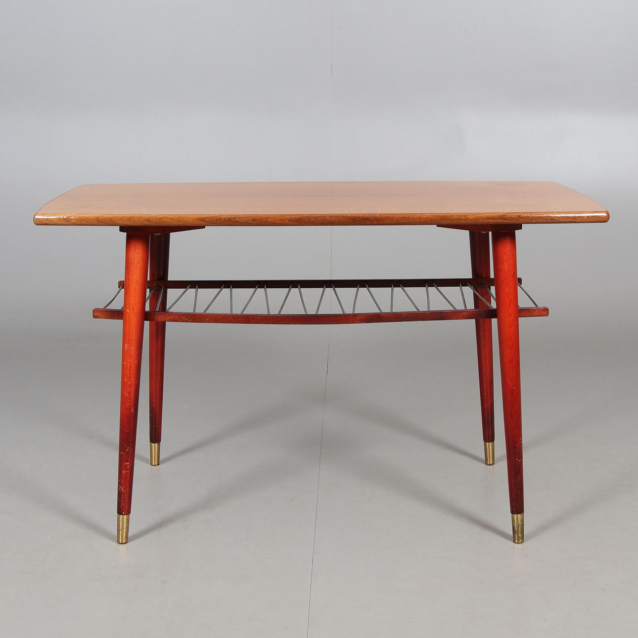 Längd 94, bredd 50, höjd 56.5 cm. Mässing fötter.