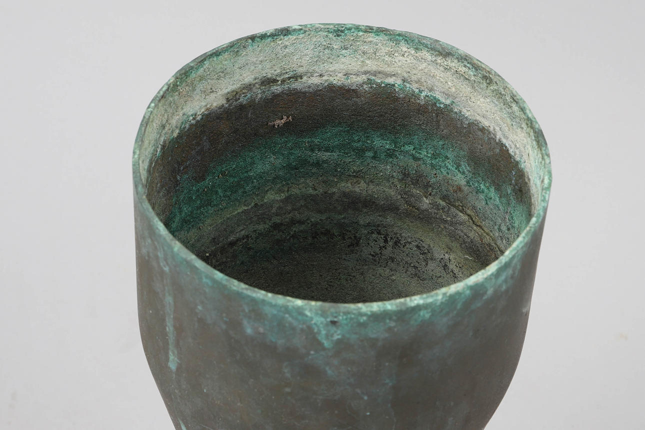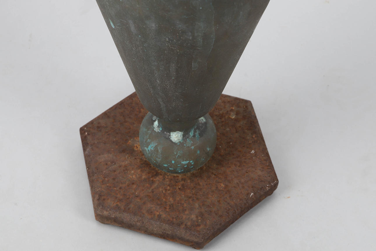 Vas i brons med fot i gjutjärn. Höjd 43 cm.