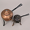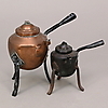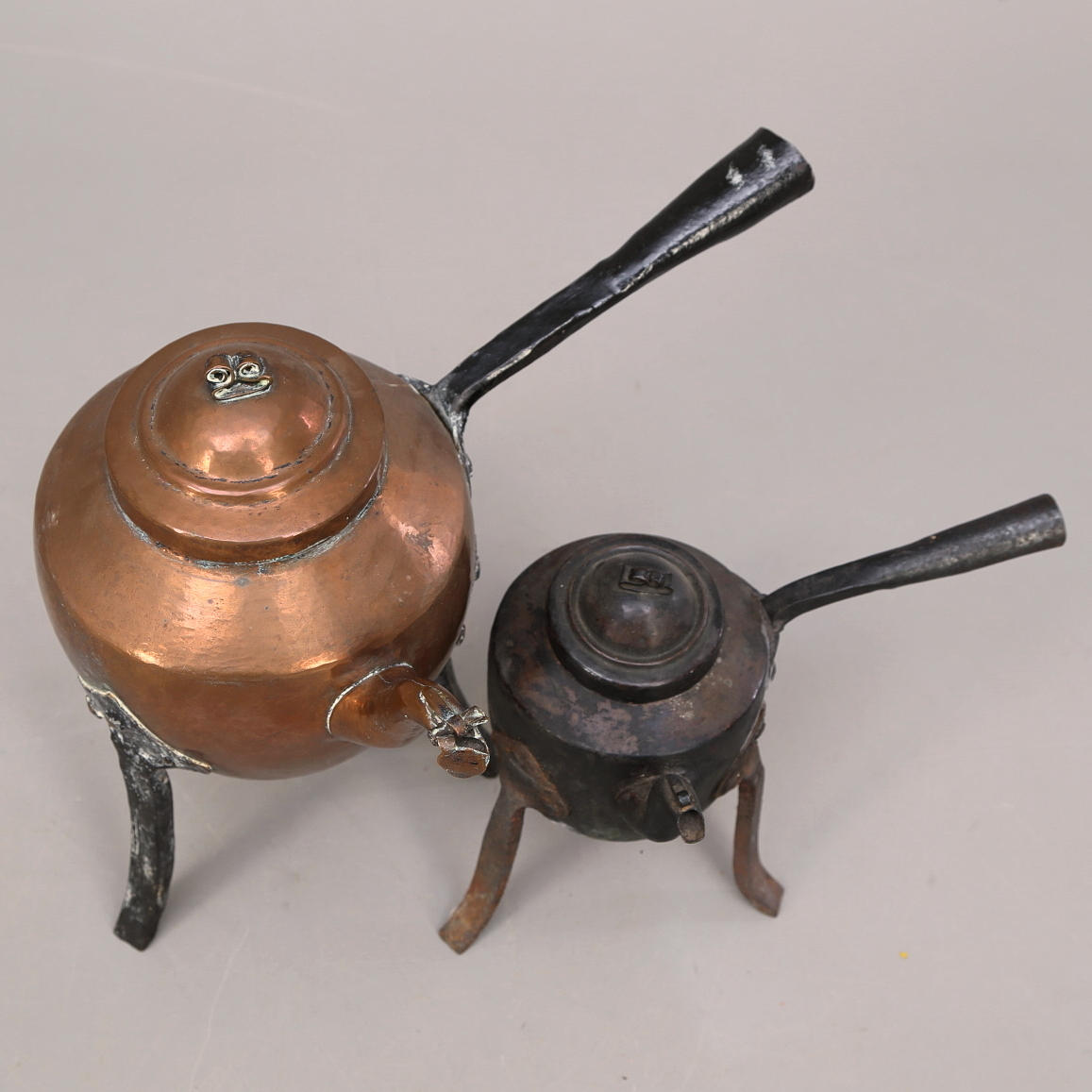 KAFFEPANNOR 2 st, trefot, koppar, 1800-tal.