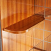 Fanerad med mahogny. Välvda dörrar med bakomliggande barinredning / lådor. Spegelklädd insida. Delvis frostad glasskiva med randdekor på ovansida. Integrerad belysning. Underliggande utdragbar klaff samt låda.
