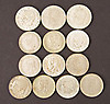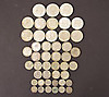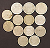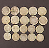 3 5-kronor, 10 2-kronor, 10 1-kronor, 10 50-öringar samt 12 25-öringar.