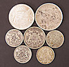 1 1-dollar 1922, 1 50-krona 1976, 1 2-krona 1876 samt 4-1-kronor 1898, 1904, 1906 samt 1907.