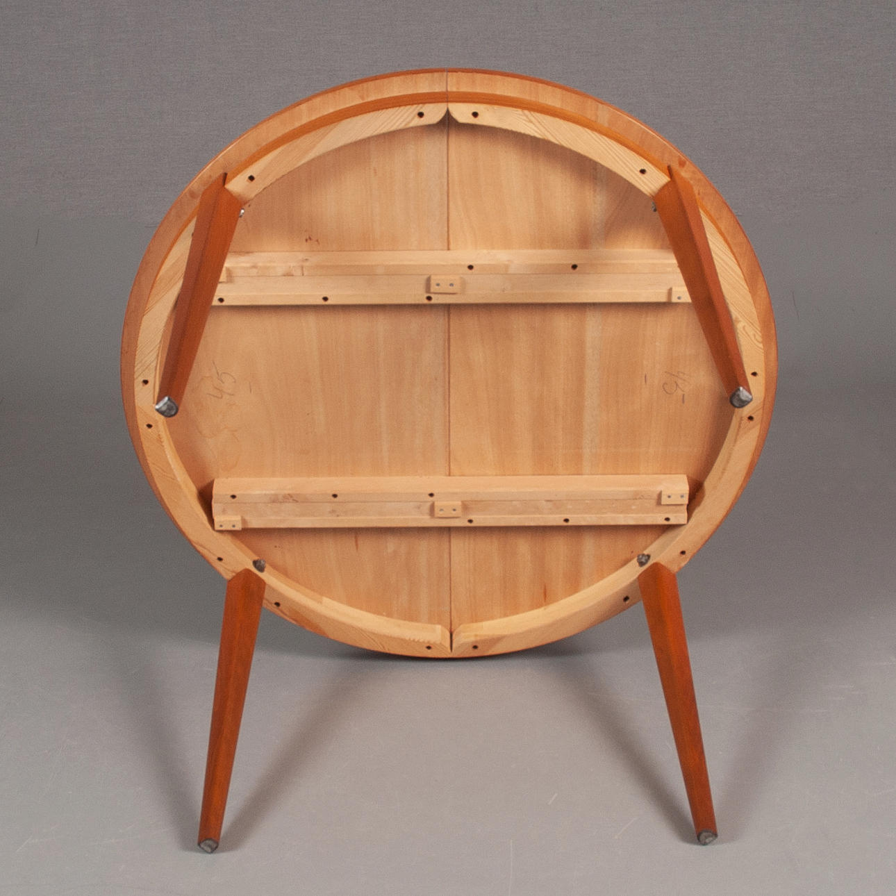Höjd 73 cm, diameter 105 cm. två iläggskivor a 30 cm.