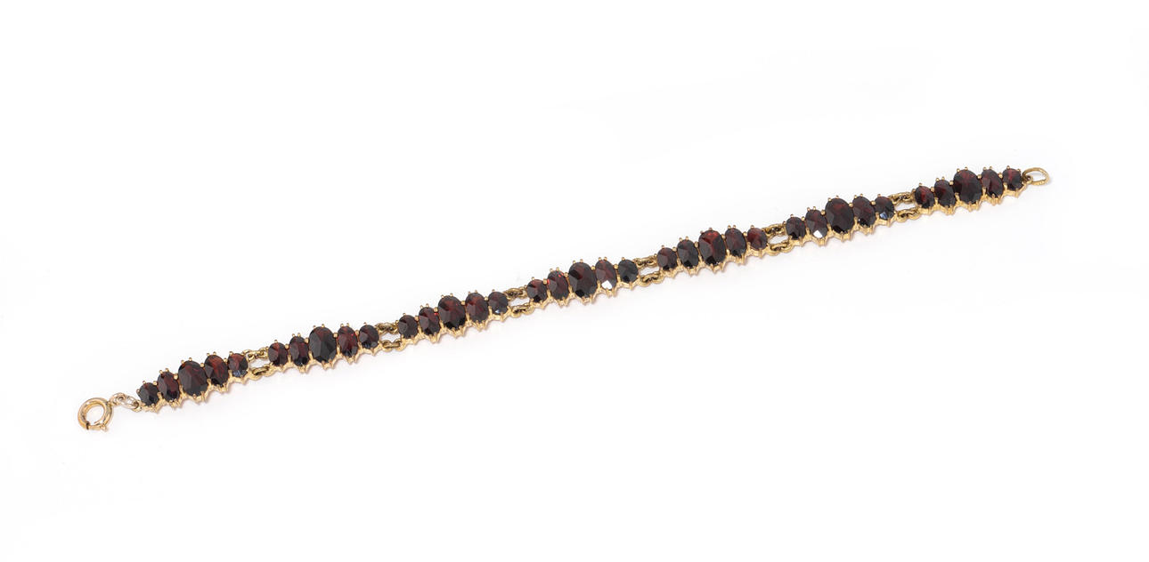 Armband, 35 granater, dubbel, ca. 12,0 g, längd ca. 20 cm.