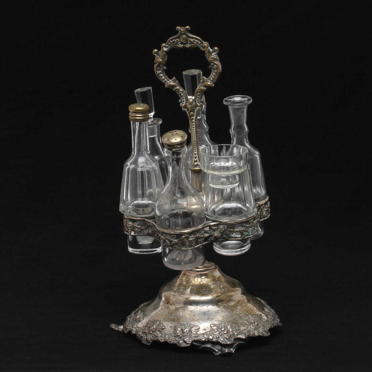 BORDSURTOUT, nysilver och glas, 1900-tal.