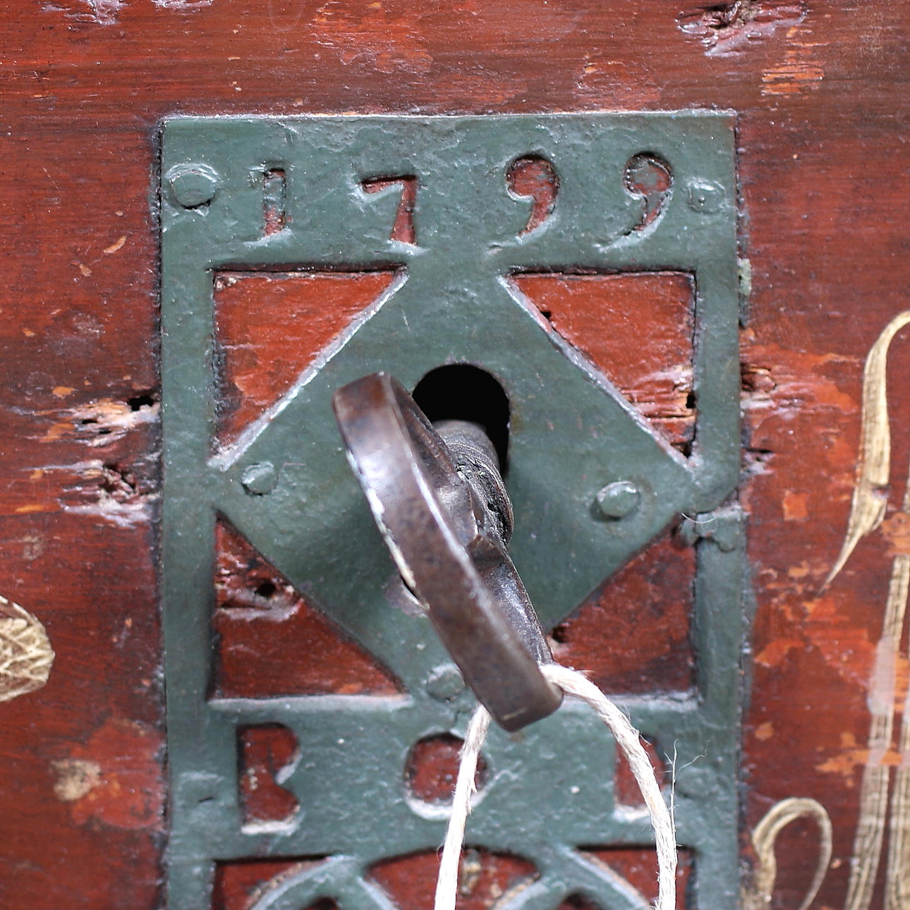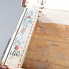 Slitage. Spricka i locket. Repor. Märken. Senare bemålning.