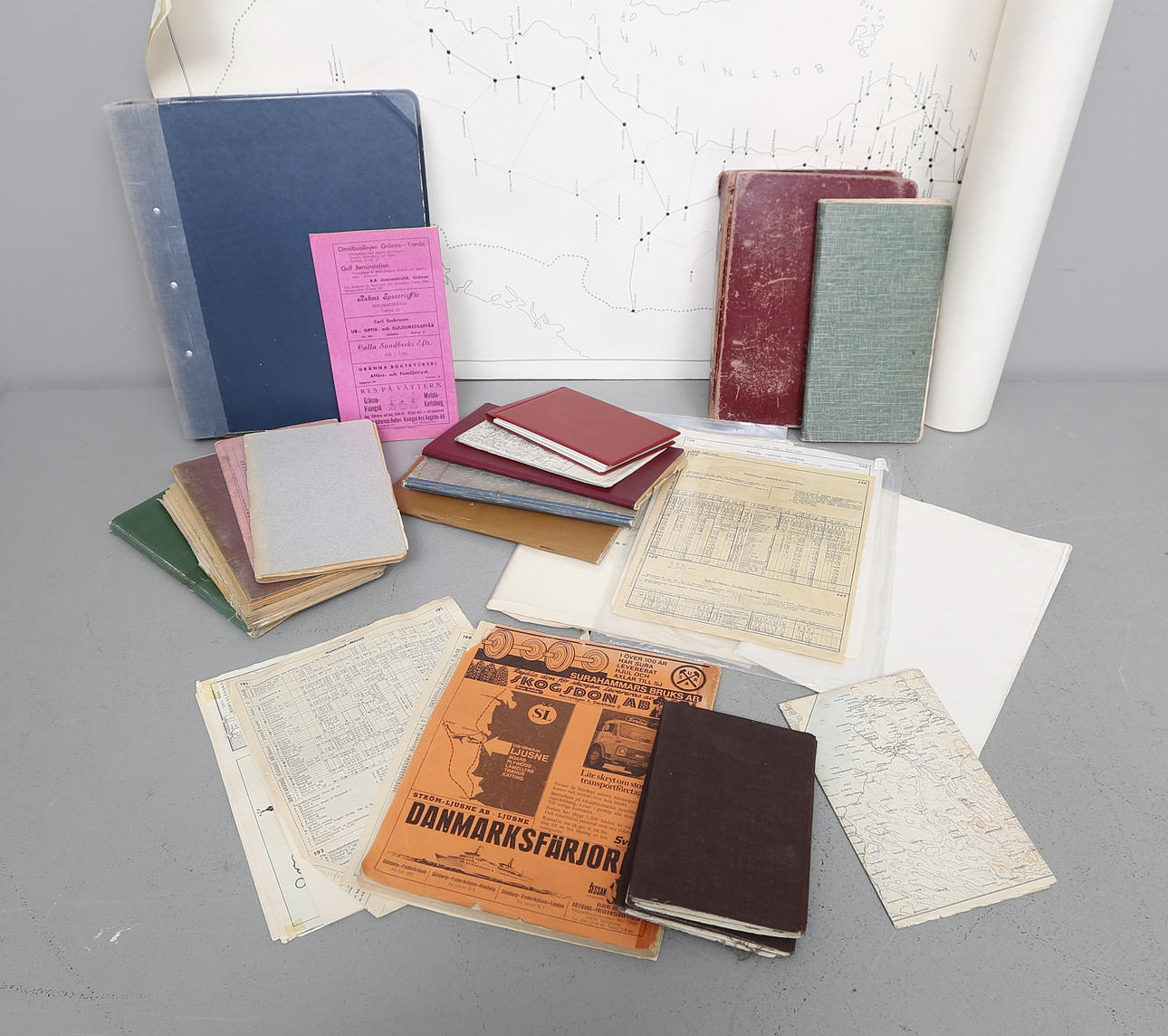 Kartor, tidtabeller med mera.
