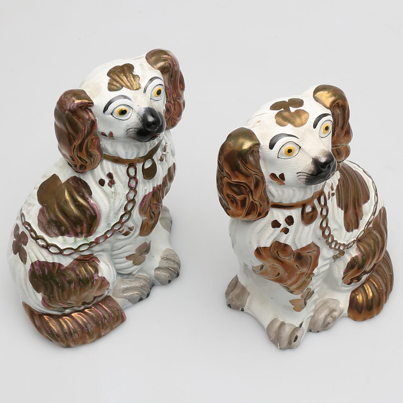 2 st hundar i porslin, höjd 23 cm. Omärkta.