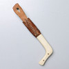 Samekniven har ett karakteristiskt utseende med en kort, böjd knivblad och en rundad eller oval form. Bladet är vanligtvis tillverkat av kolstål och har en skarp egg. Handtaget är traditionellt gjort av renhorn, ben, trä eller andra naturliga material och kan vara dekorerat med sniderier eller inläggningar av metalltråd eller pärlor.