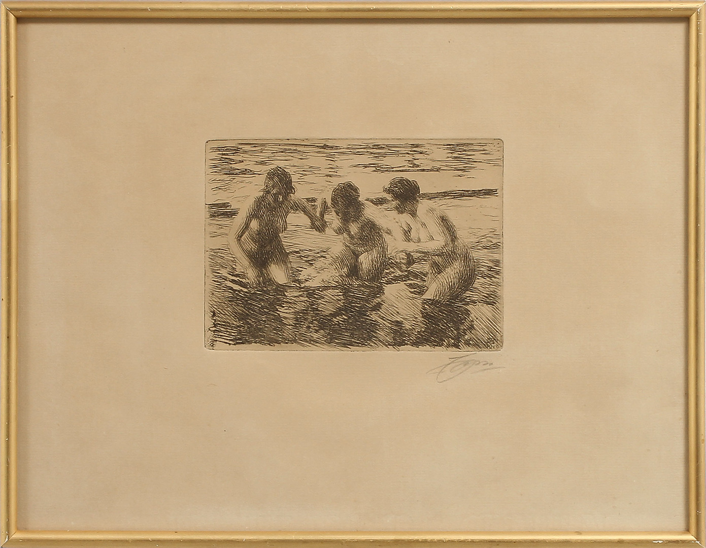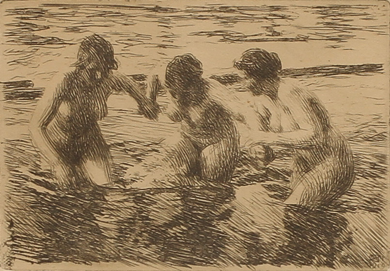 289757. ANDERS ZORN. "Mot strömmen", etsning, signerad.