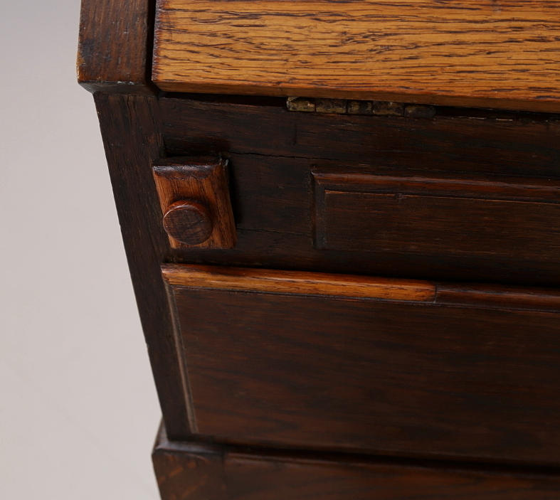 Skrivklaff med bakomliggande lådinredning. Höjd 106, längd 90, bredd 47 cm.