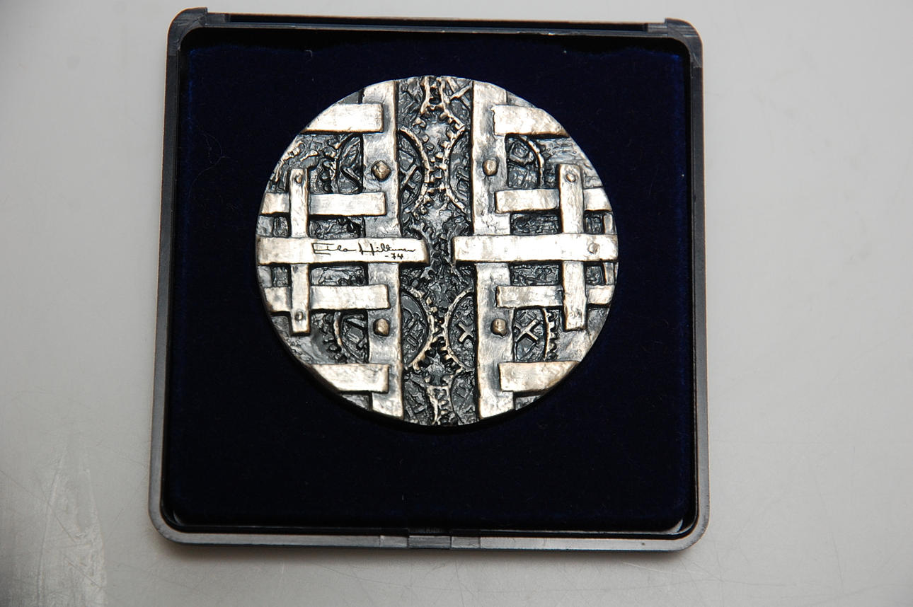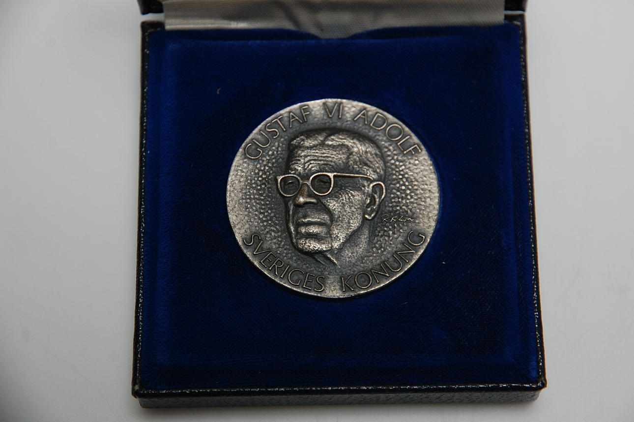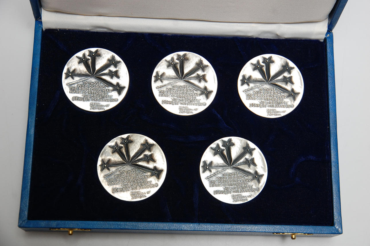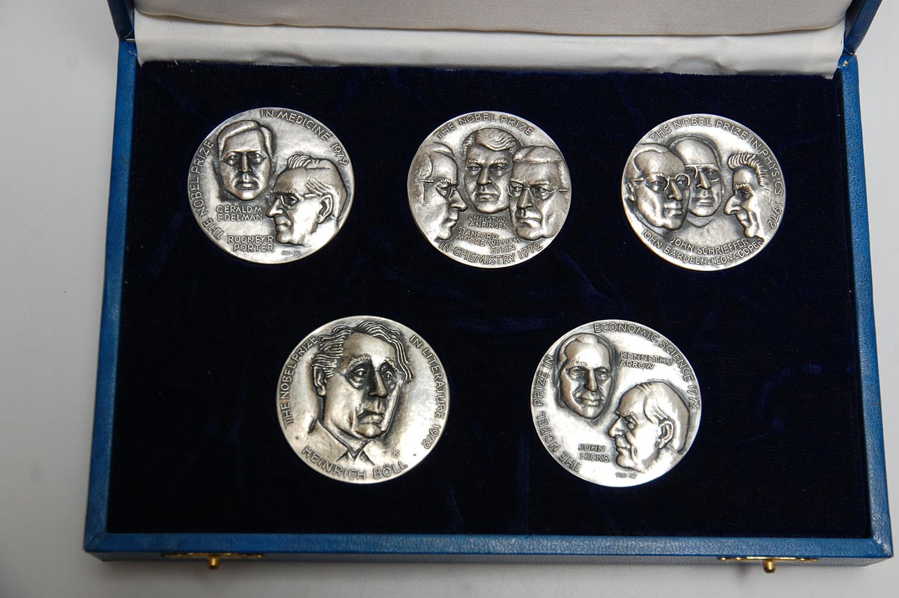 Schatull med 5 st silvermedaljer, nobelpristagare 1972.