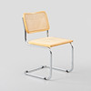 Stålrörsstomme med träram och rotting i sits och rygg.