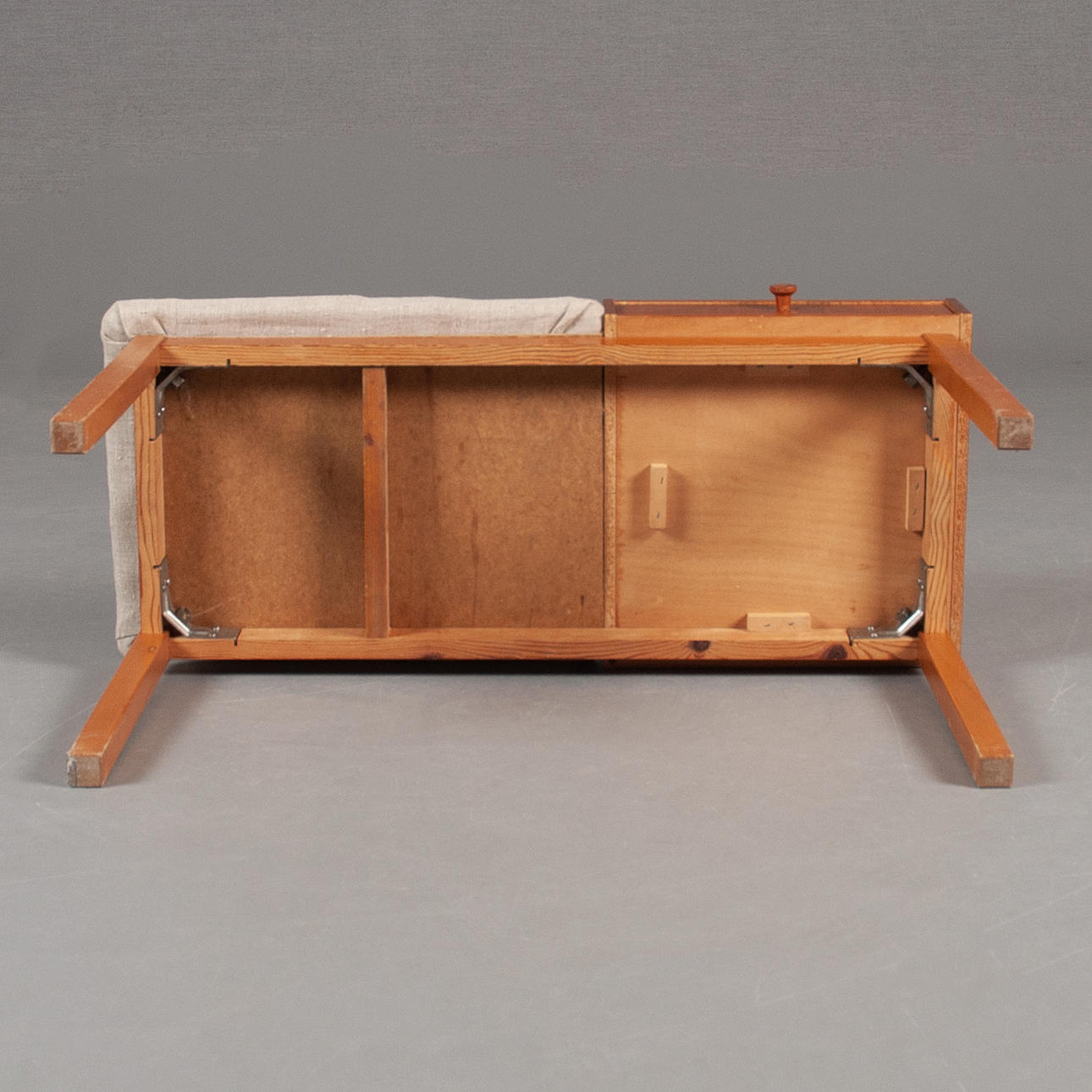 Telefonbänk med klädd sits.