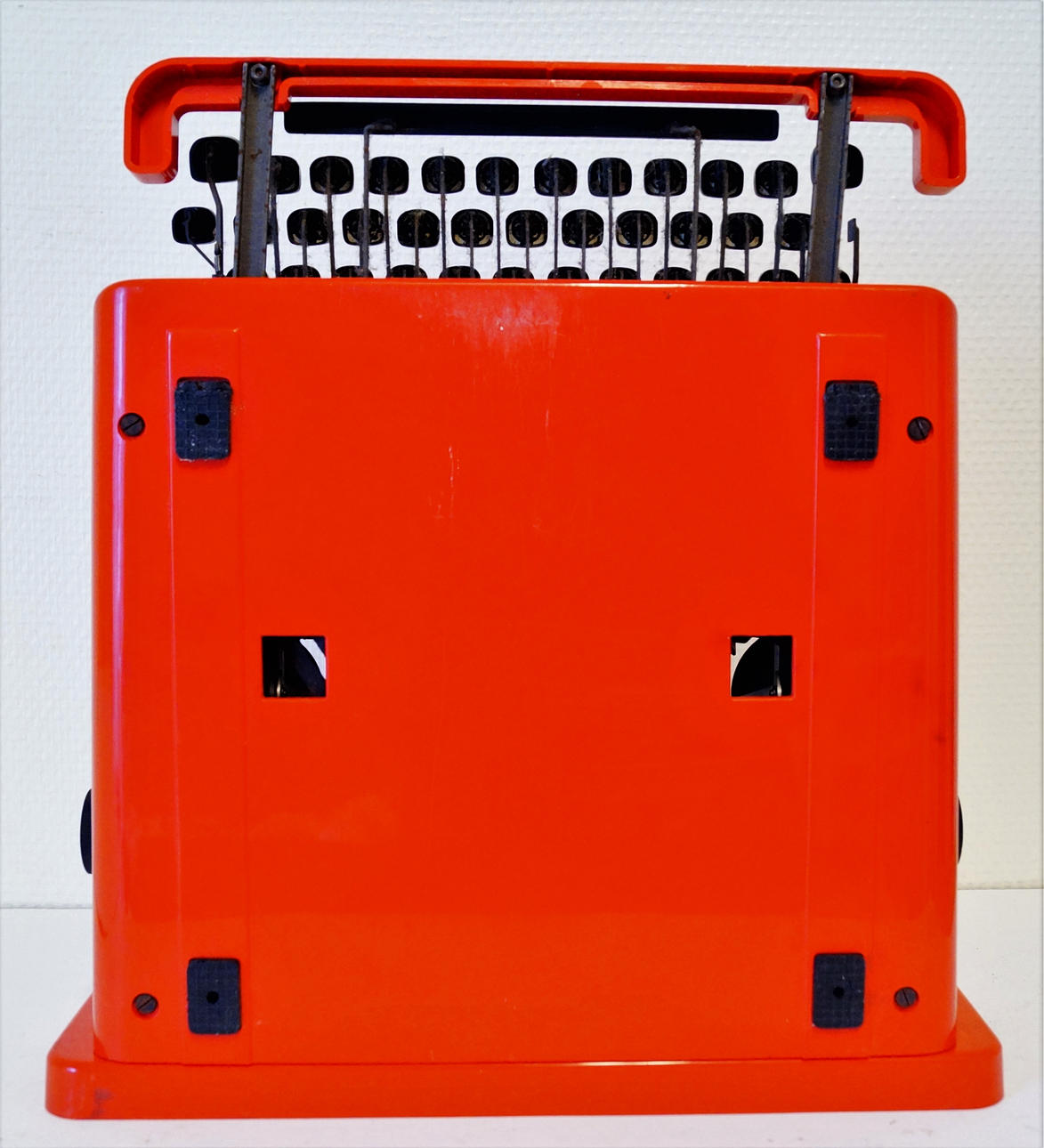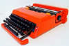 Skrivmaskin, Valentine, Olivetti, design Ettore Sotass & Perry King. Röd plast med original case. Mått fodral 35 x 33 x 11 cm.