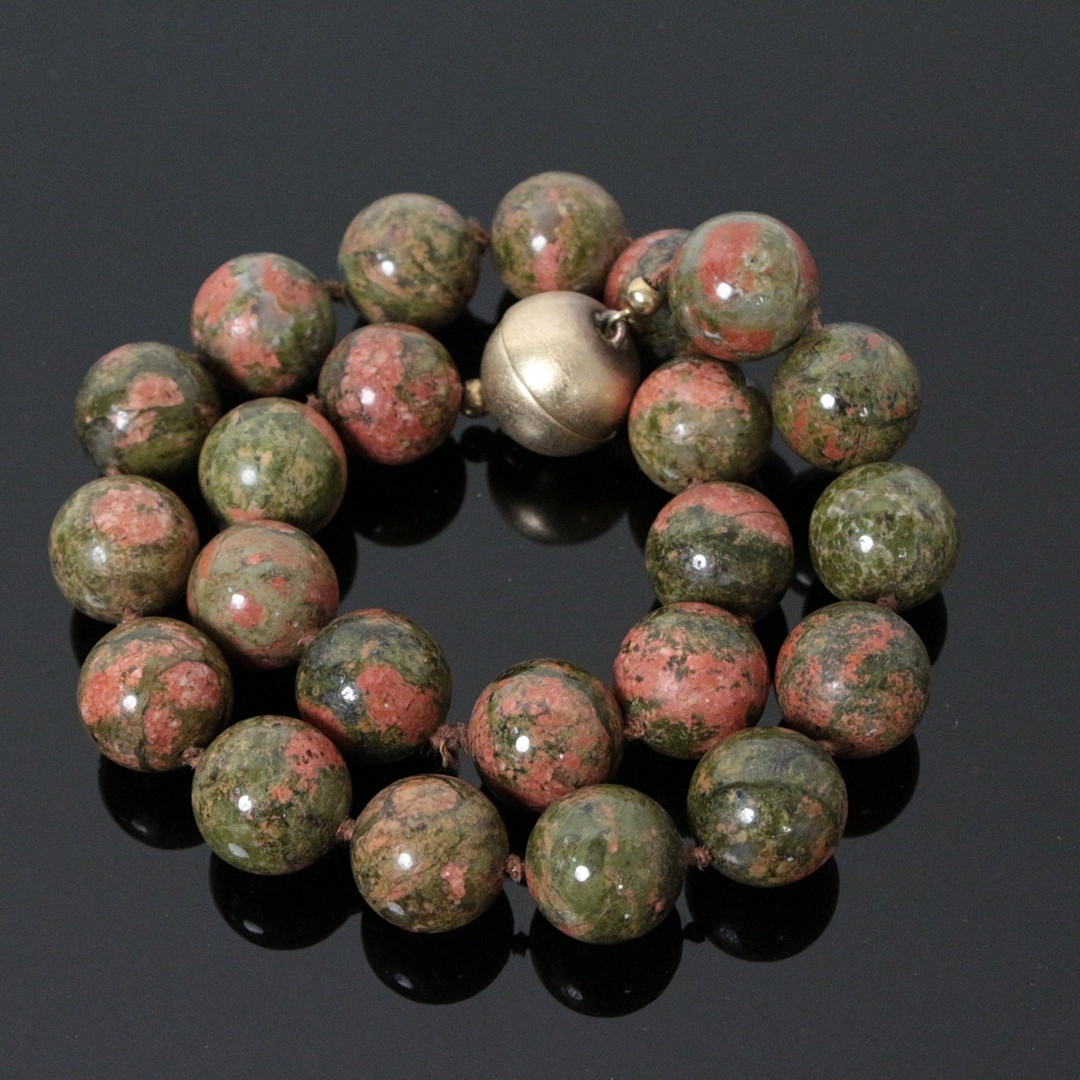 2903669. Halsband med jaspis och silverlås.