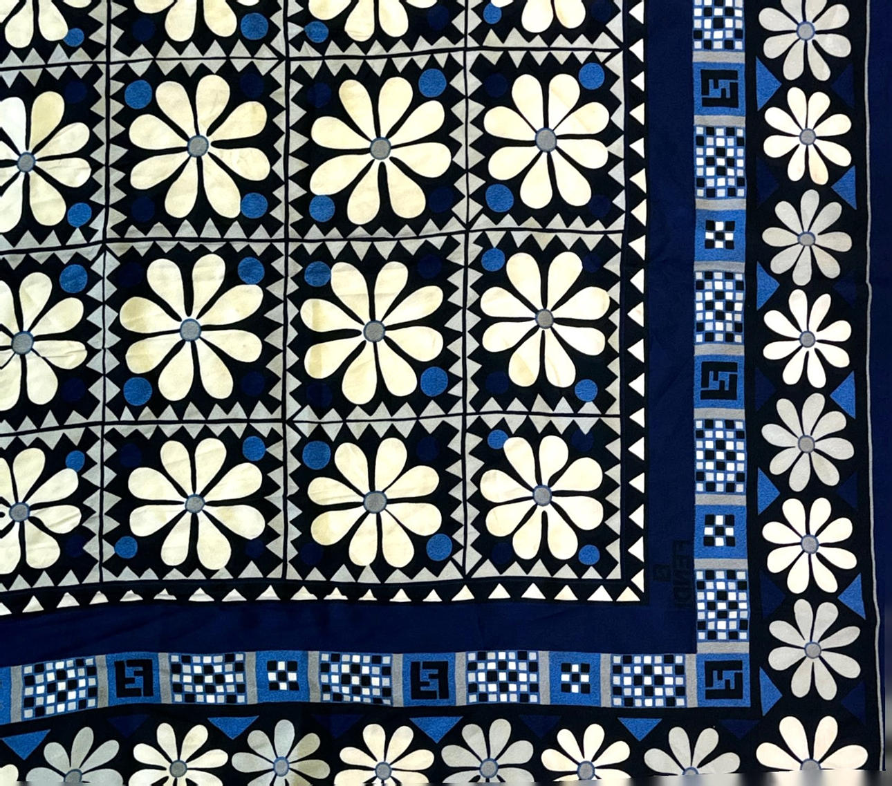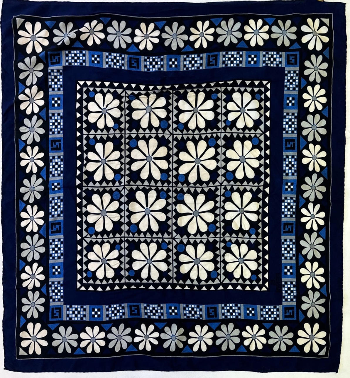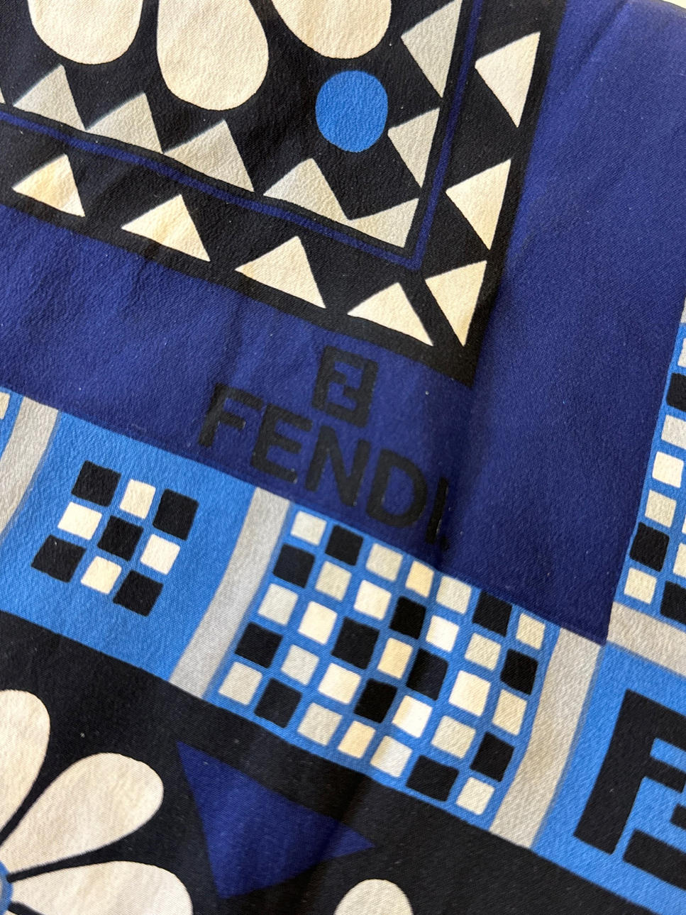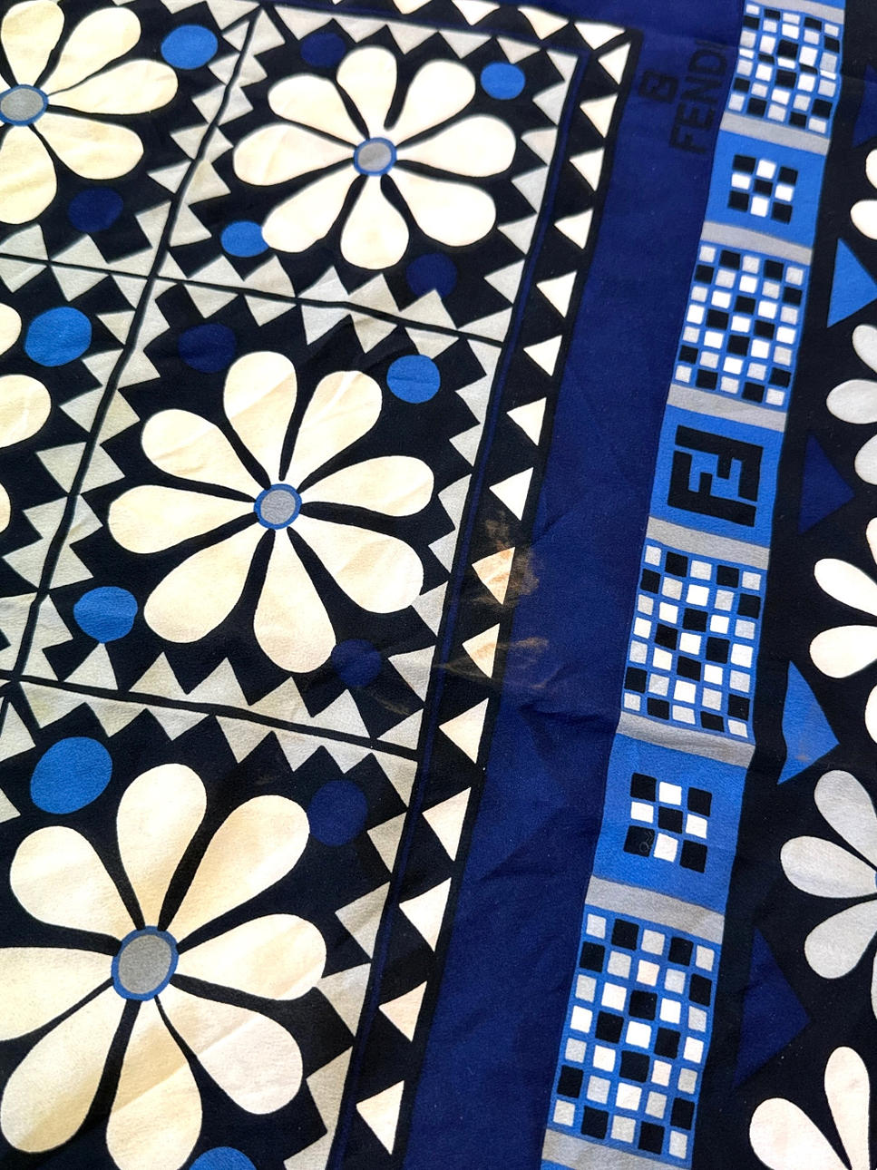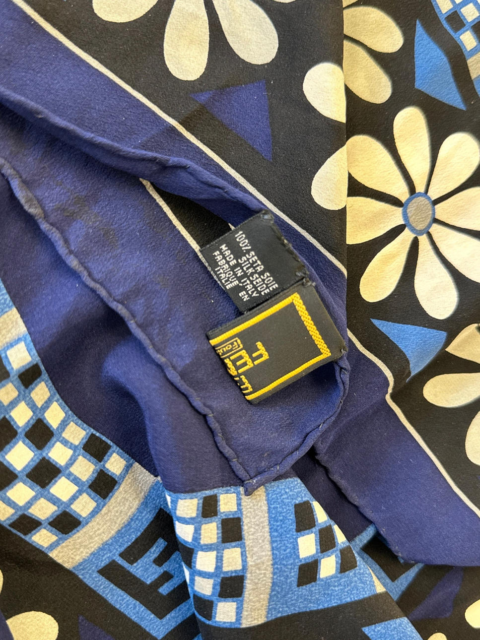 En vintage Fendi blå sidenscarf med blommig dekor, 84,5 x 82,5 cm.