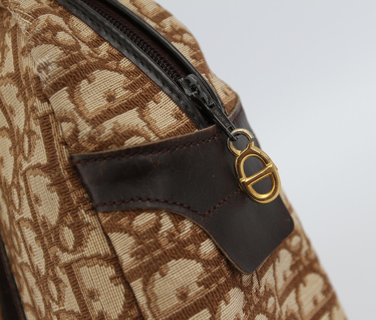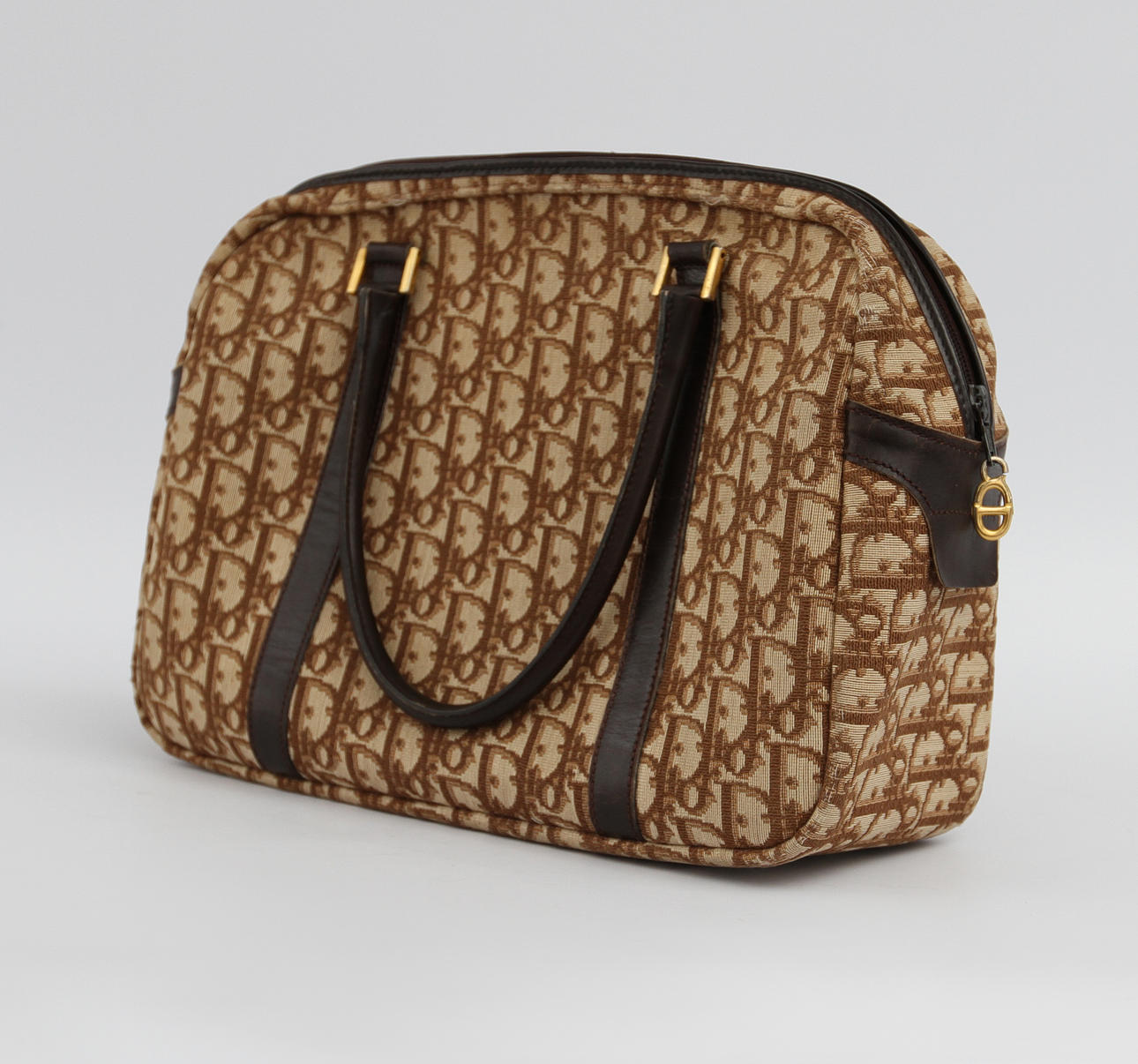 Monogrammönstrad canvas med skinndetaljer. Längd 35 cm.