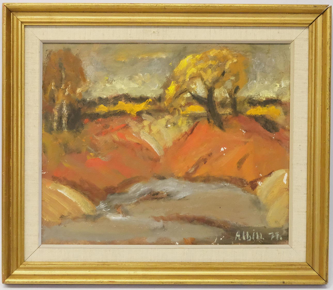 Motiv med skoglandskap. Signerad och daterad '77. Bildmått: ca 26 x32 cm. Rammått: ca 36 x 41,5 cm.