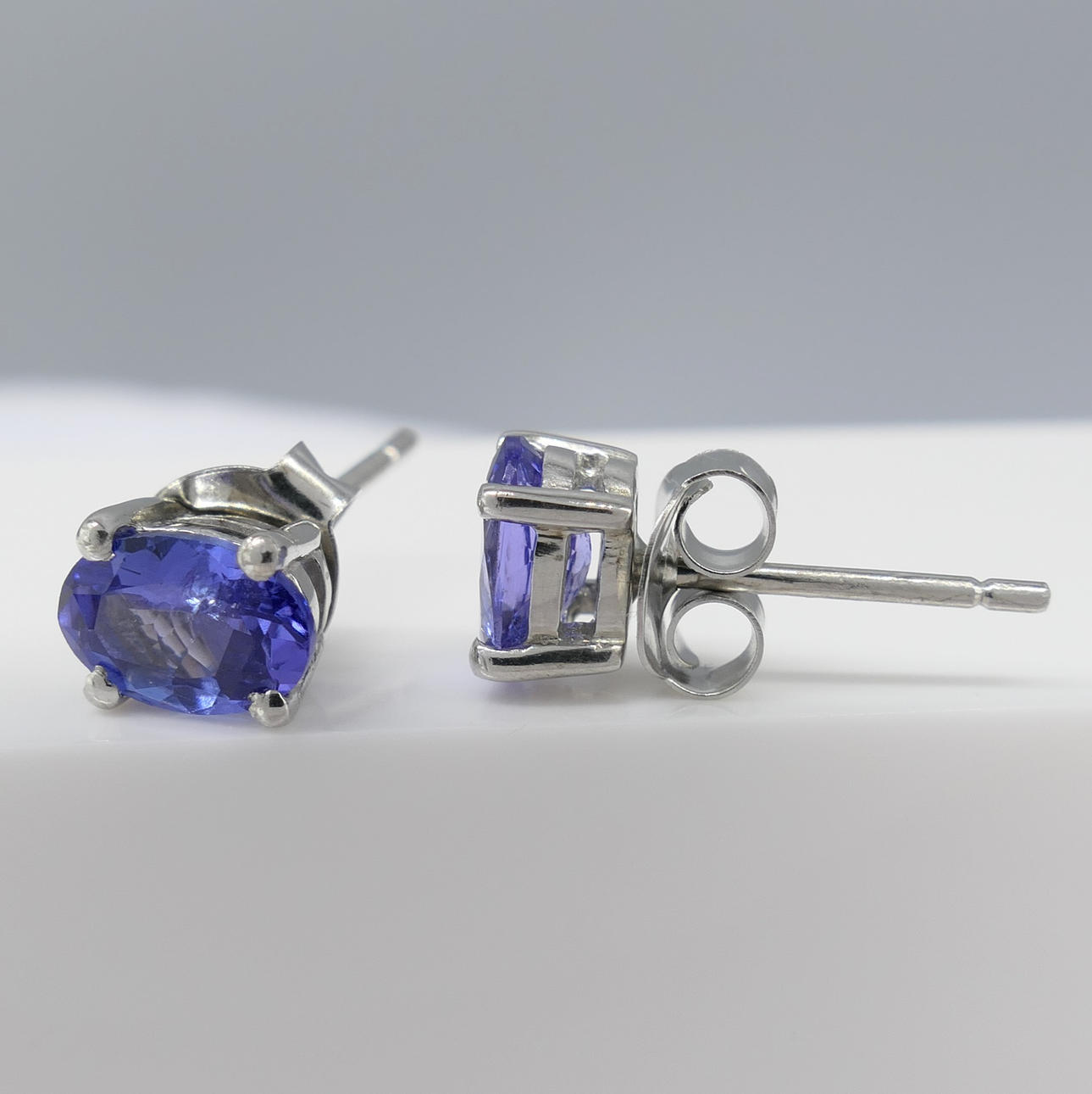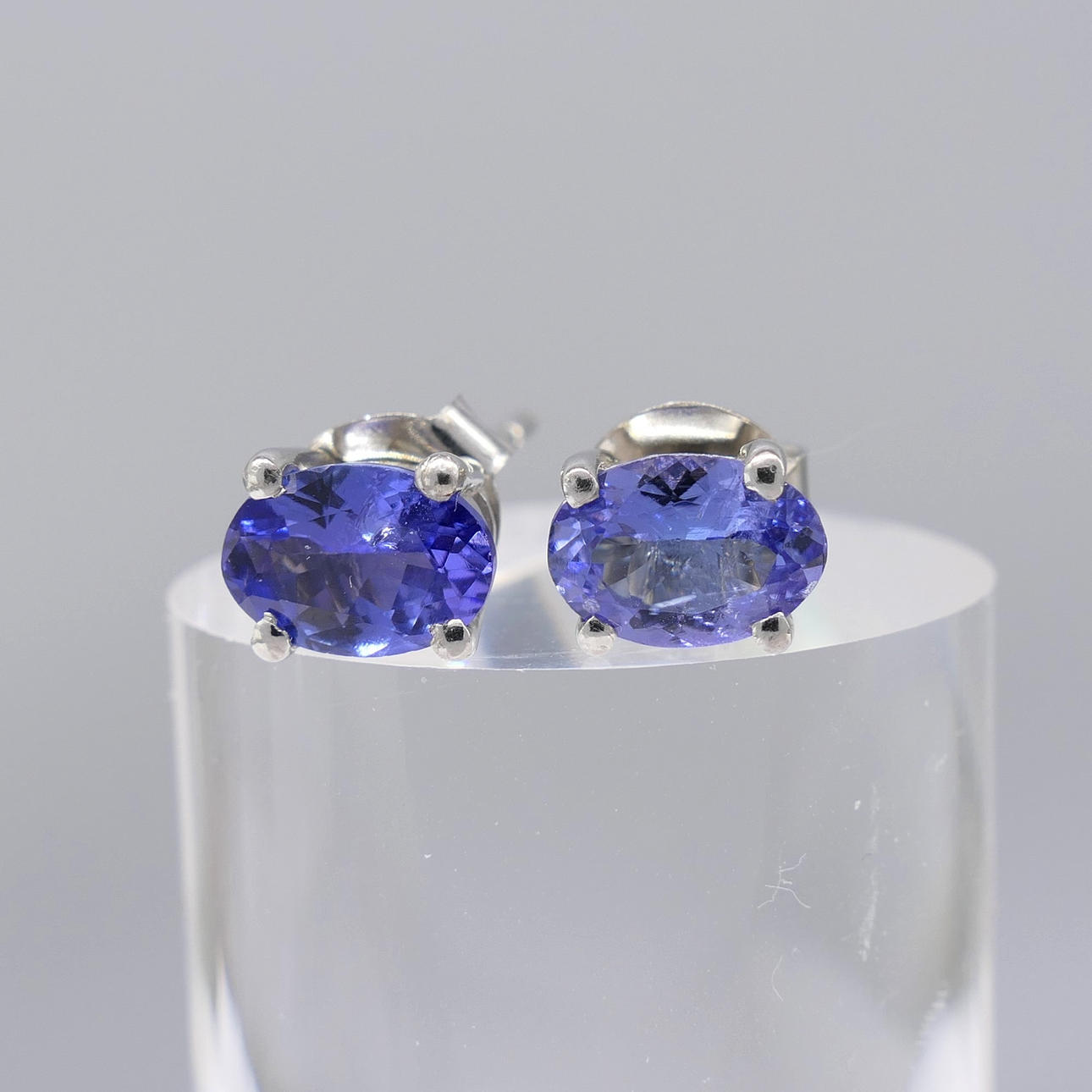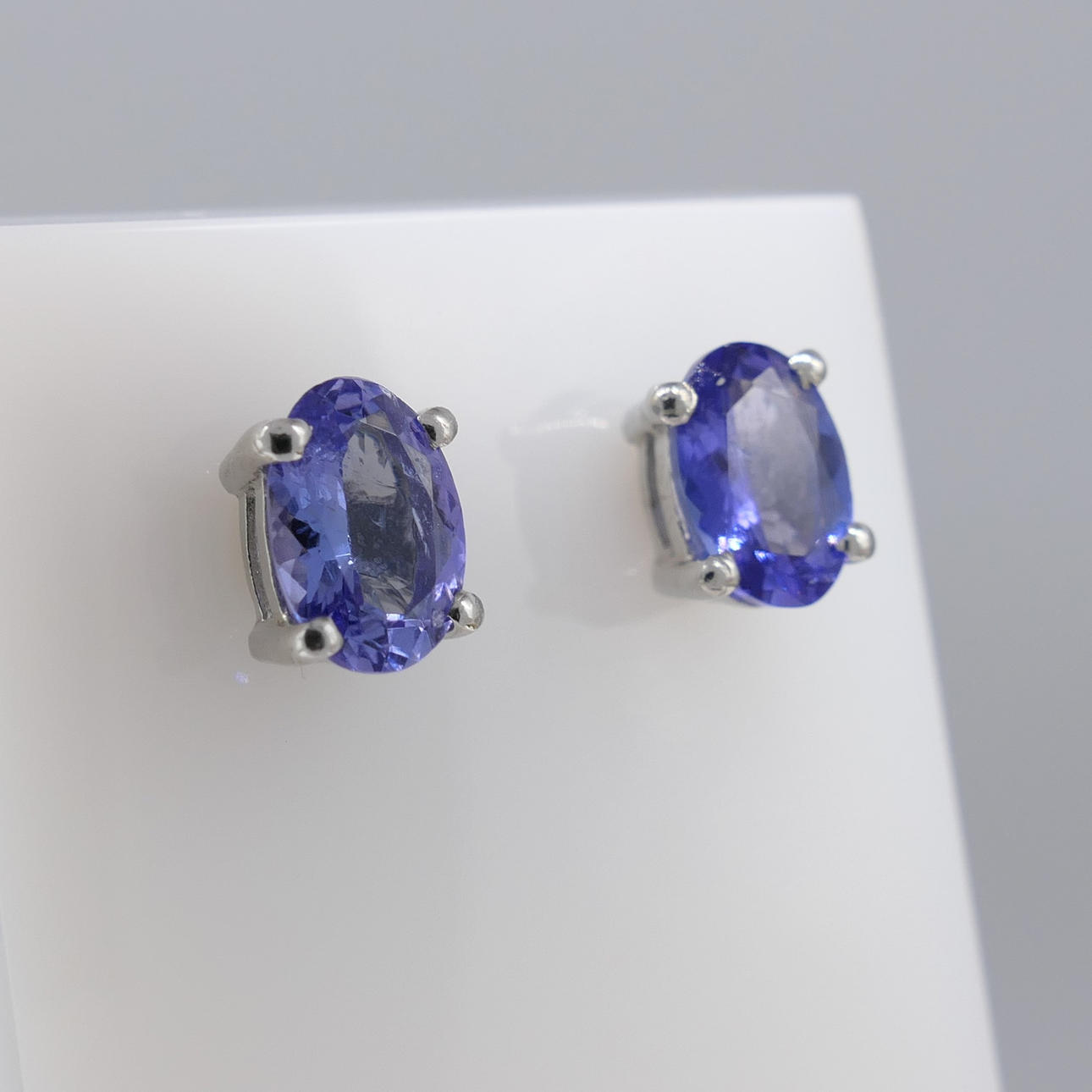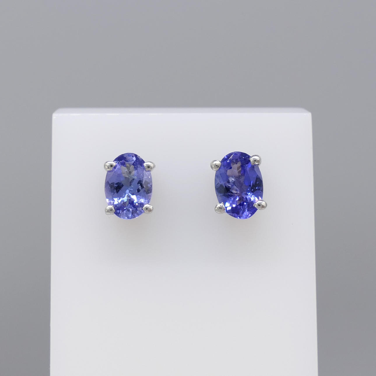 Varje tanzanit är ovalskuren och mäter 7 x 5 mm ca.. Den totala karatvikten för båda tanzaniterna är 1.30ct ca.
