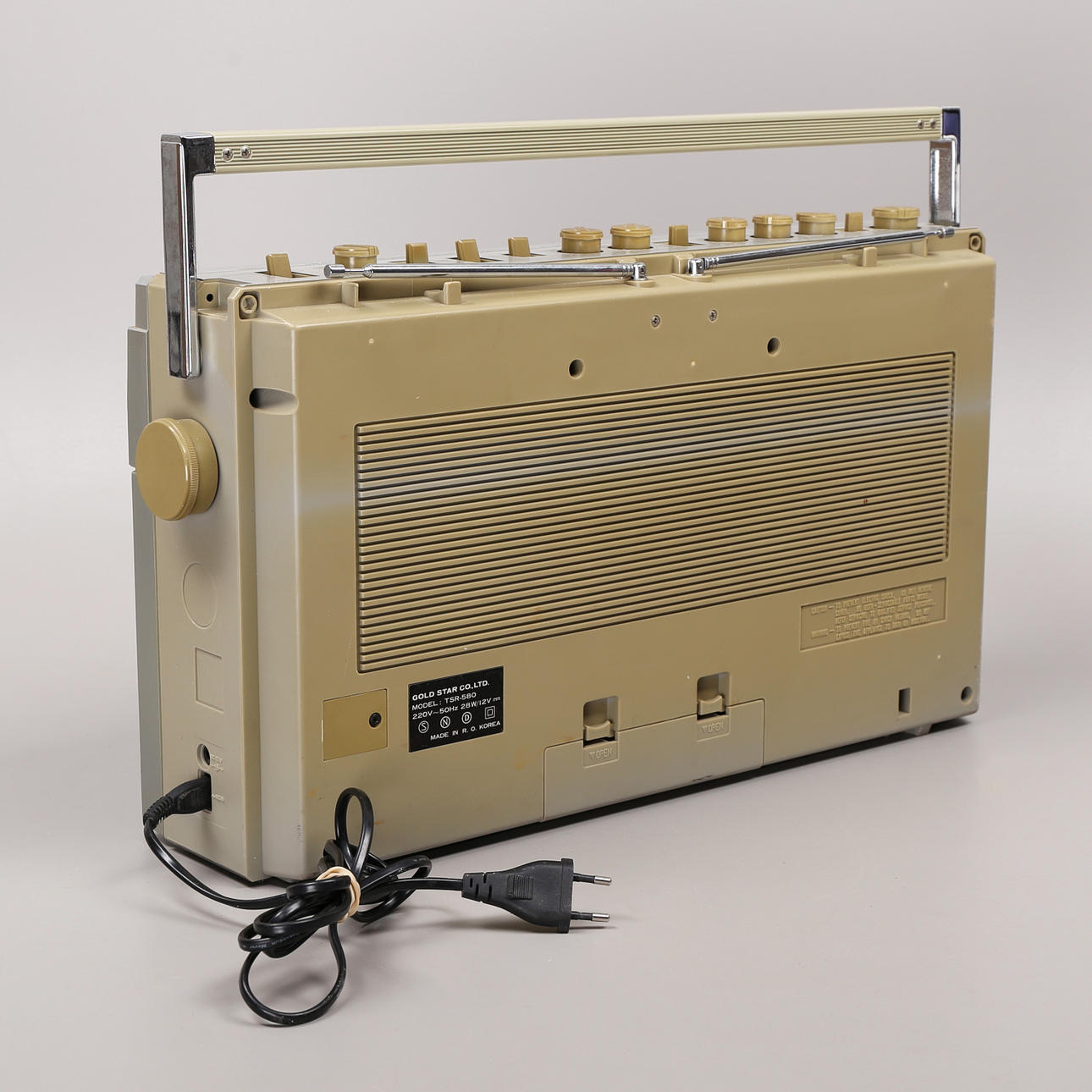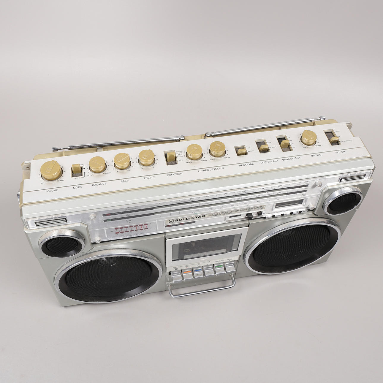 Höjd 36 cm, bredd 54 cm. Kassett och radio.