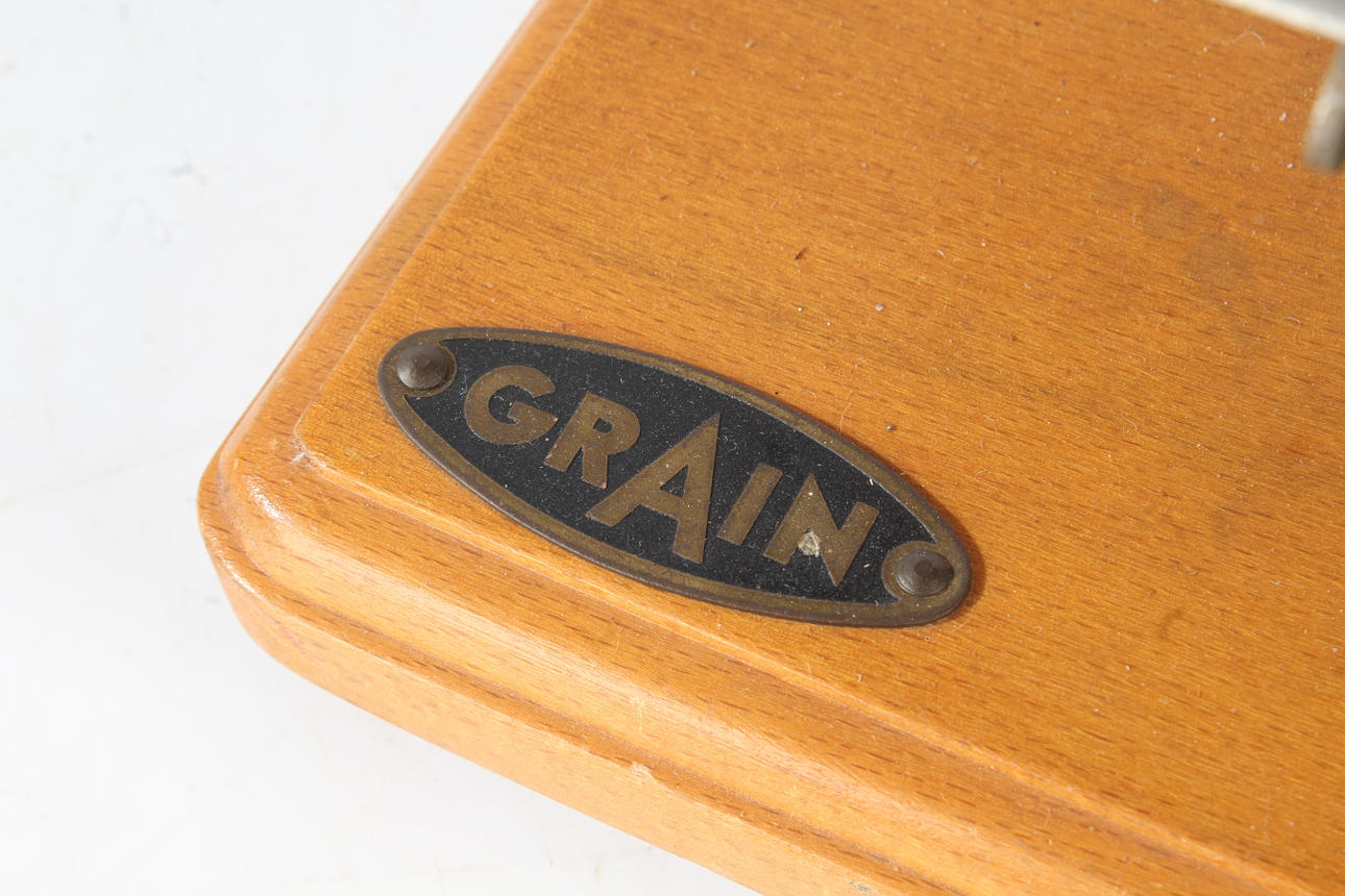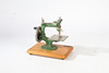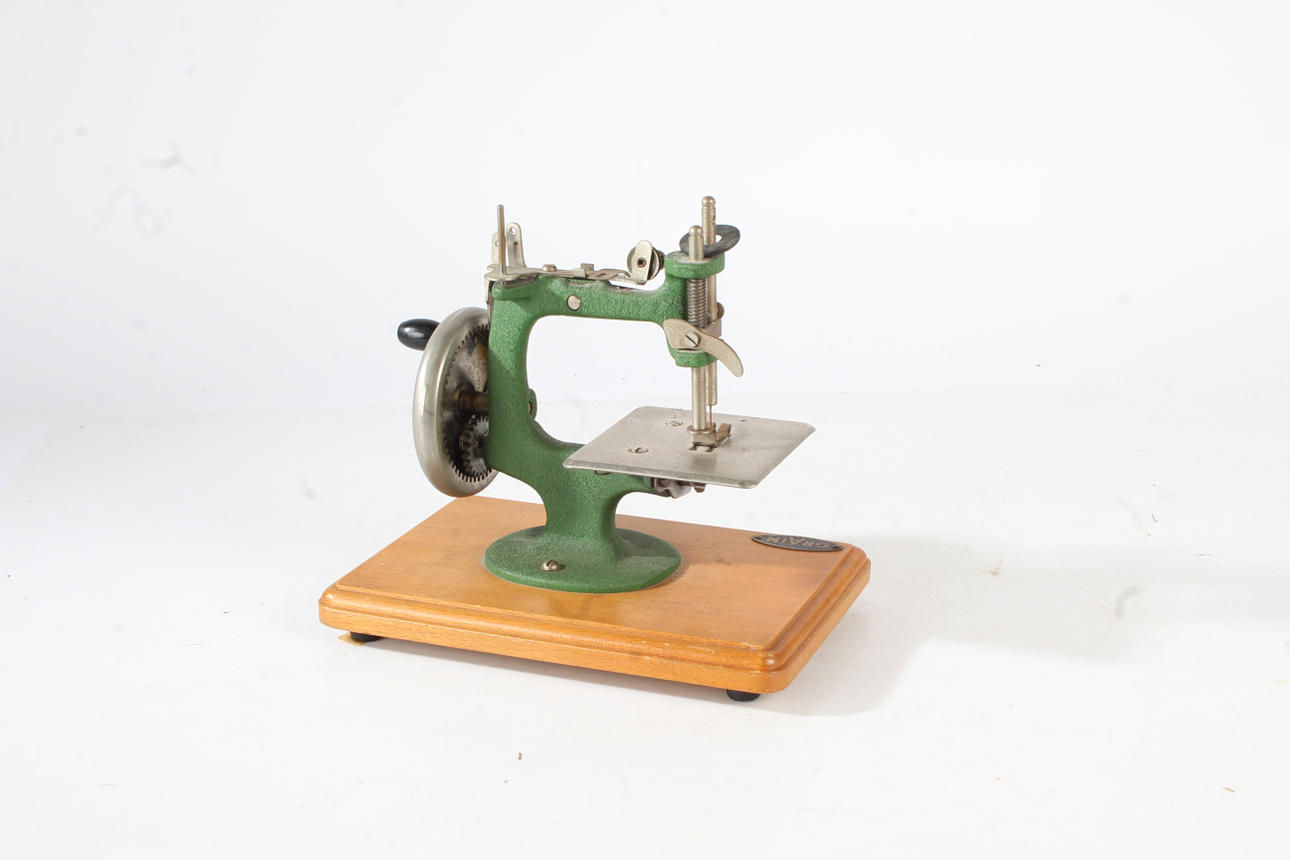 En barnsymaskin för barn från 1900-talet, målad grön uppsättning på en träbotten, 23cm bred.