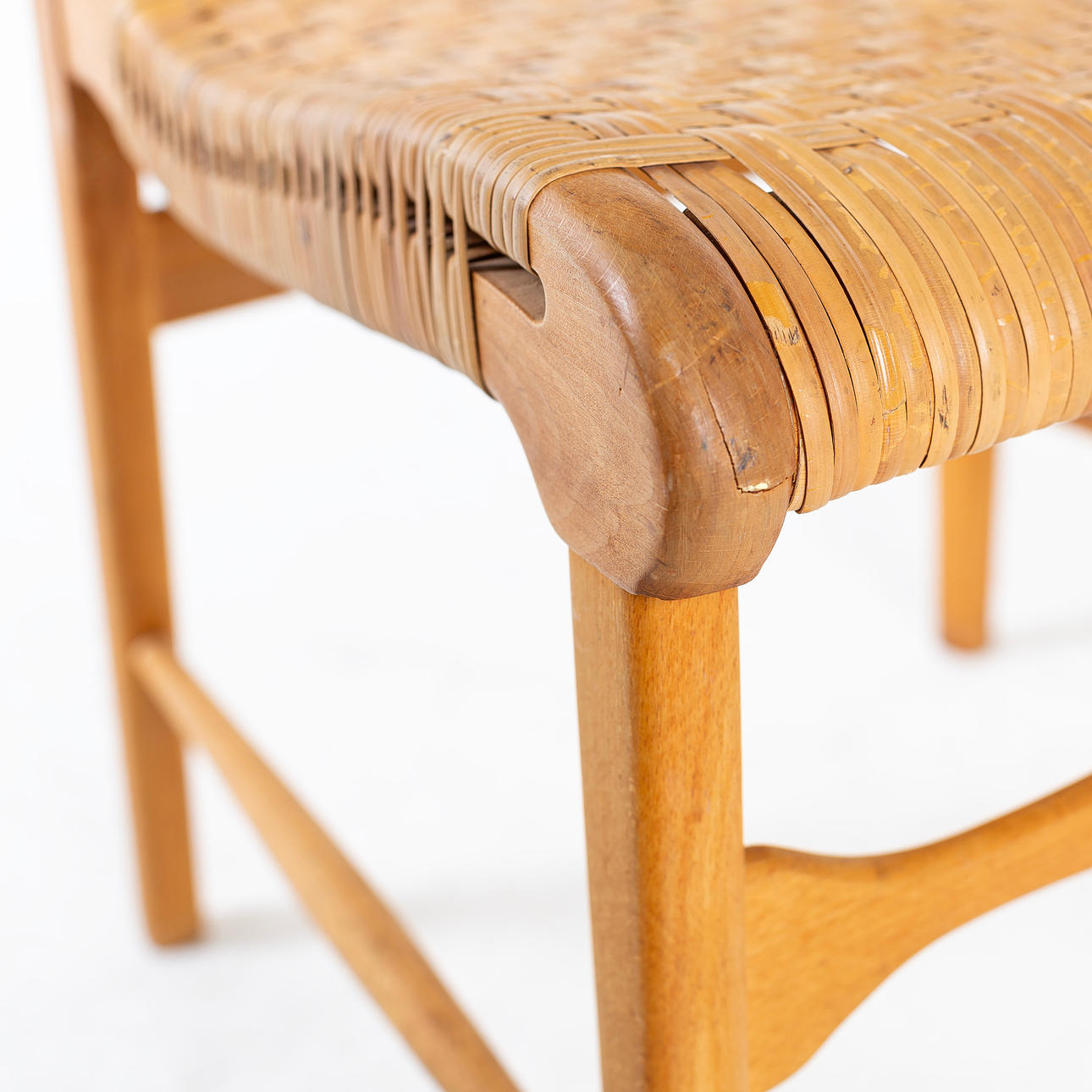 Normalt bruksslitage, något ostadig, saknas en ifyllnad vid ryggstödet.
