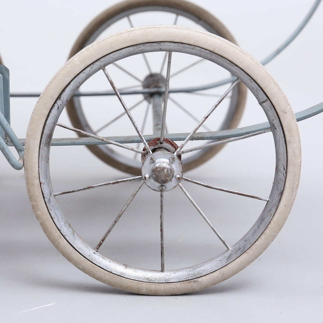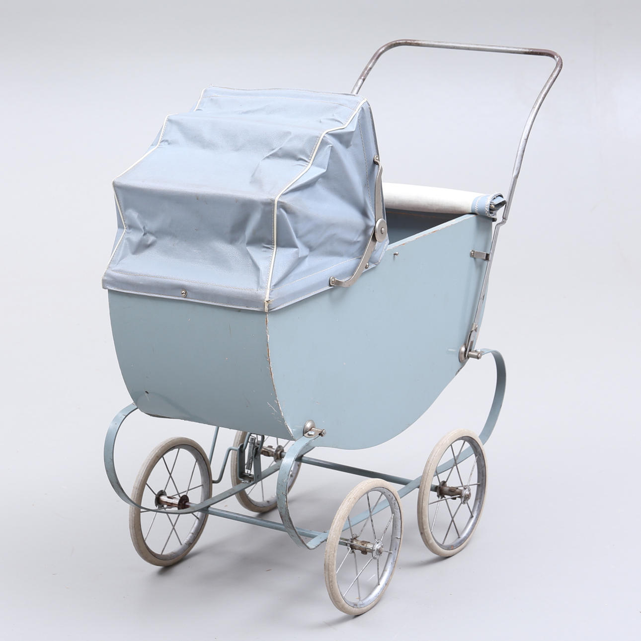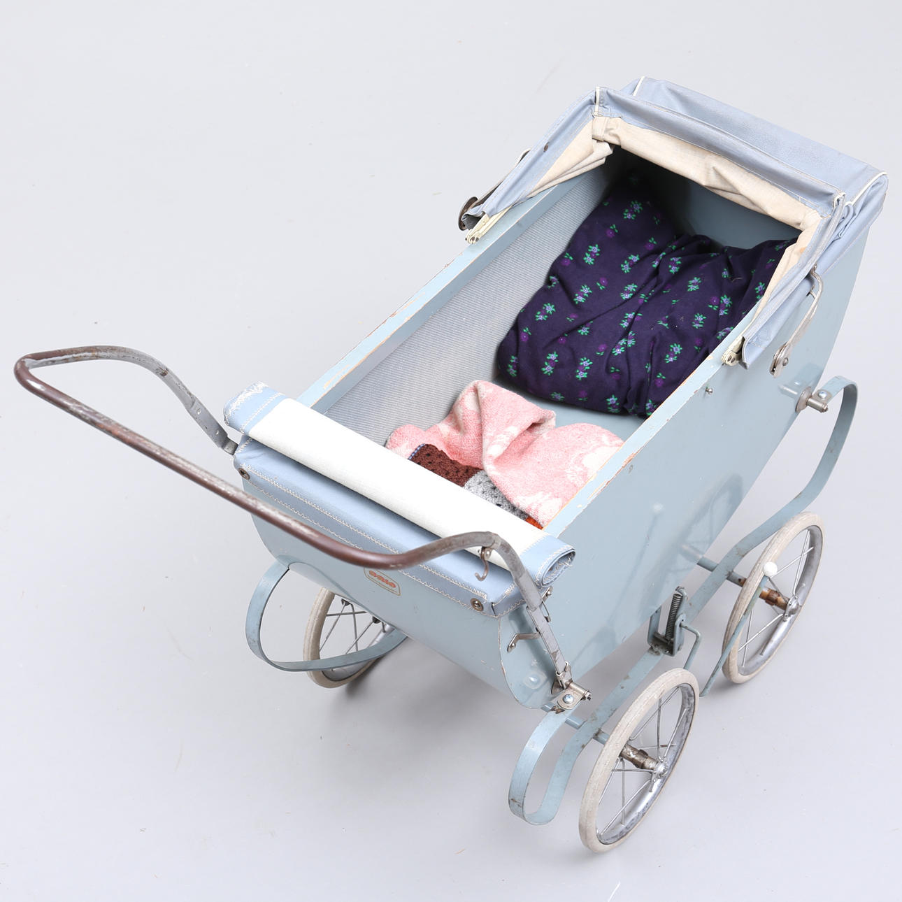 Längd liggdel ca 70 cm. Höjd handtag 79 cm. 2 dockor medföljer.