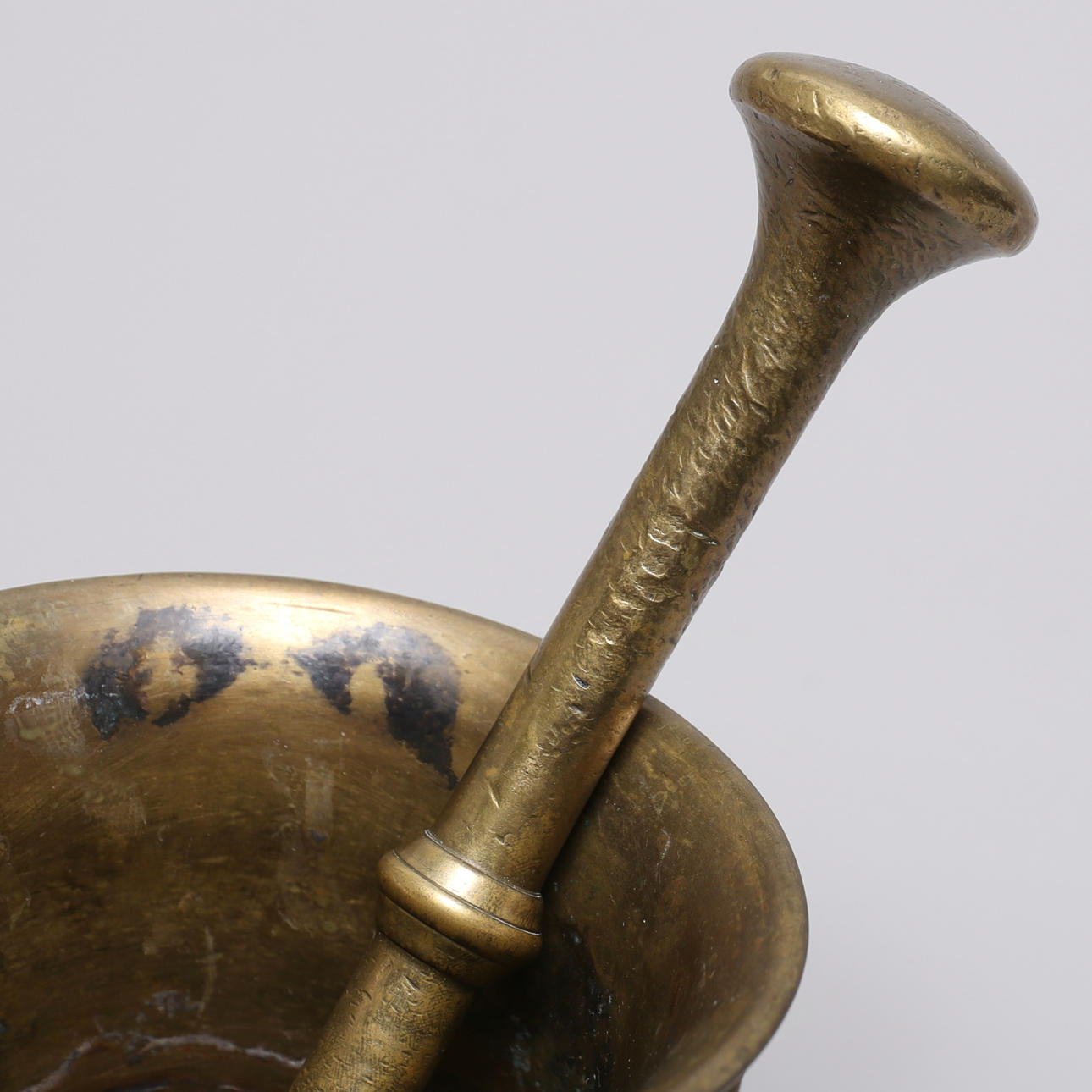 Mortel, höjd ca 14 cm. Stöt, längd ca 24 cm.