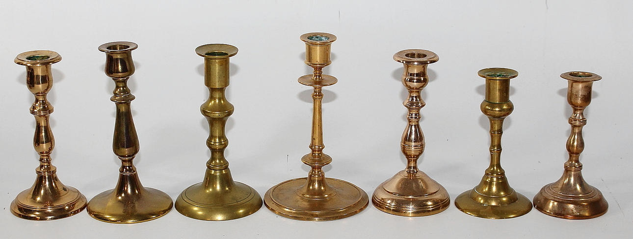 291312. LJUSSTAKAR, 13 st, mässing och malm.