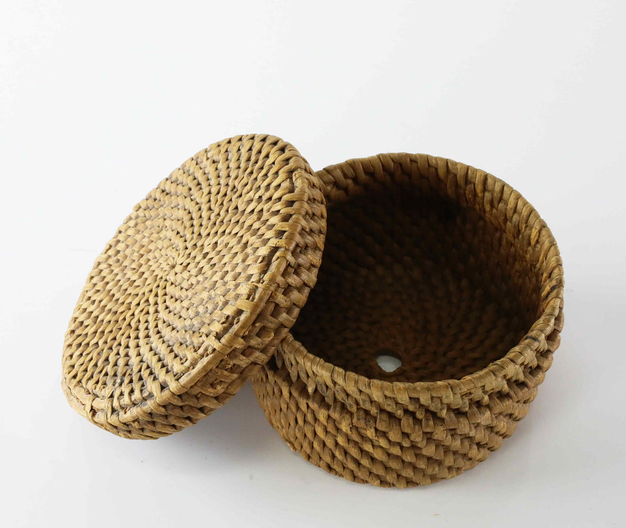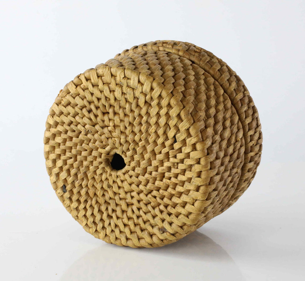 Ålders och bruksslitage, skador/saknas flätningar på kanter på locket.