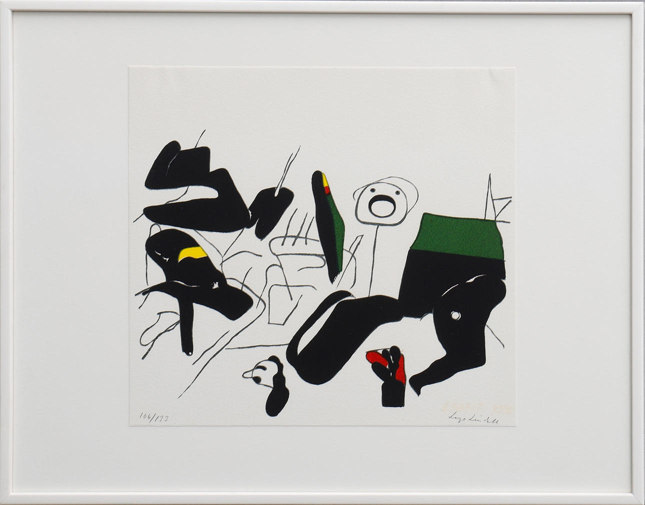 Signerad, numrerad 106/133, silkscreen på fritt liggande papper, bladmått ca 24x26 cm.