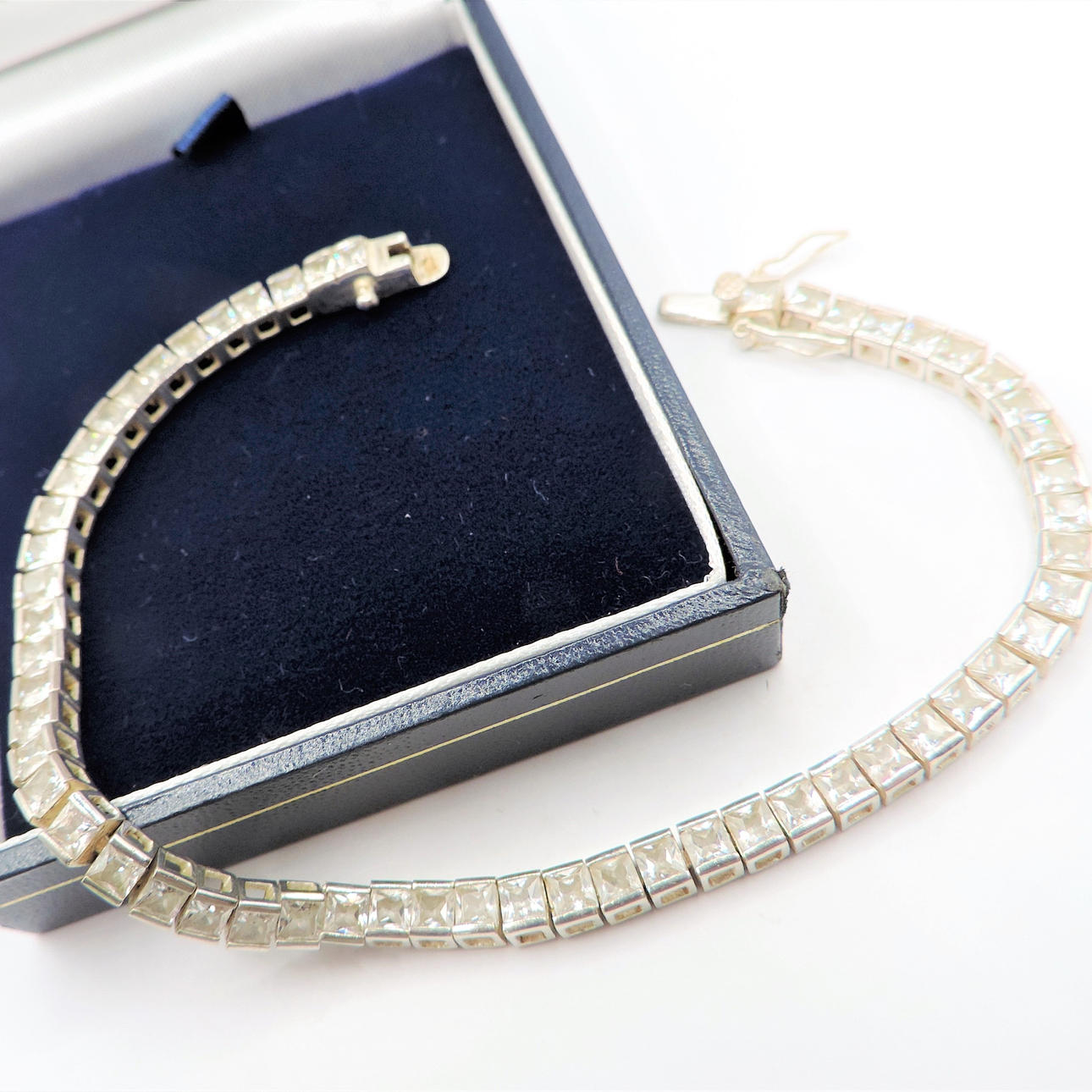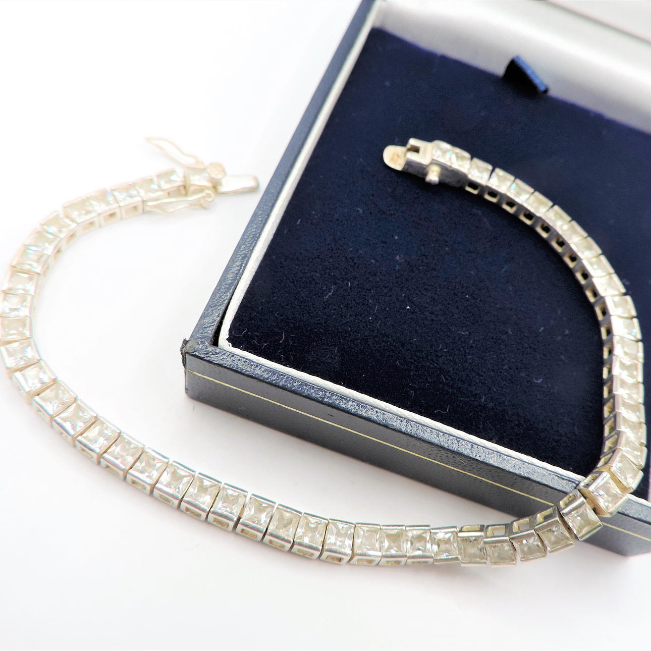 Sterling Silver 56 CZ ädelsten Tennis armband. Ett tennisarmband i sterling silver med 56 x 2 mm gnistrande diamant som Cubic Zirconia ädelstenar. Armbandet är 20cm långt.
