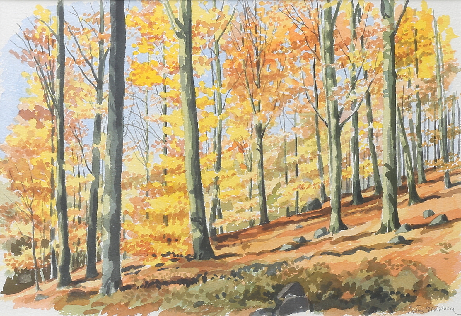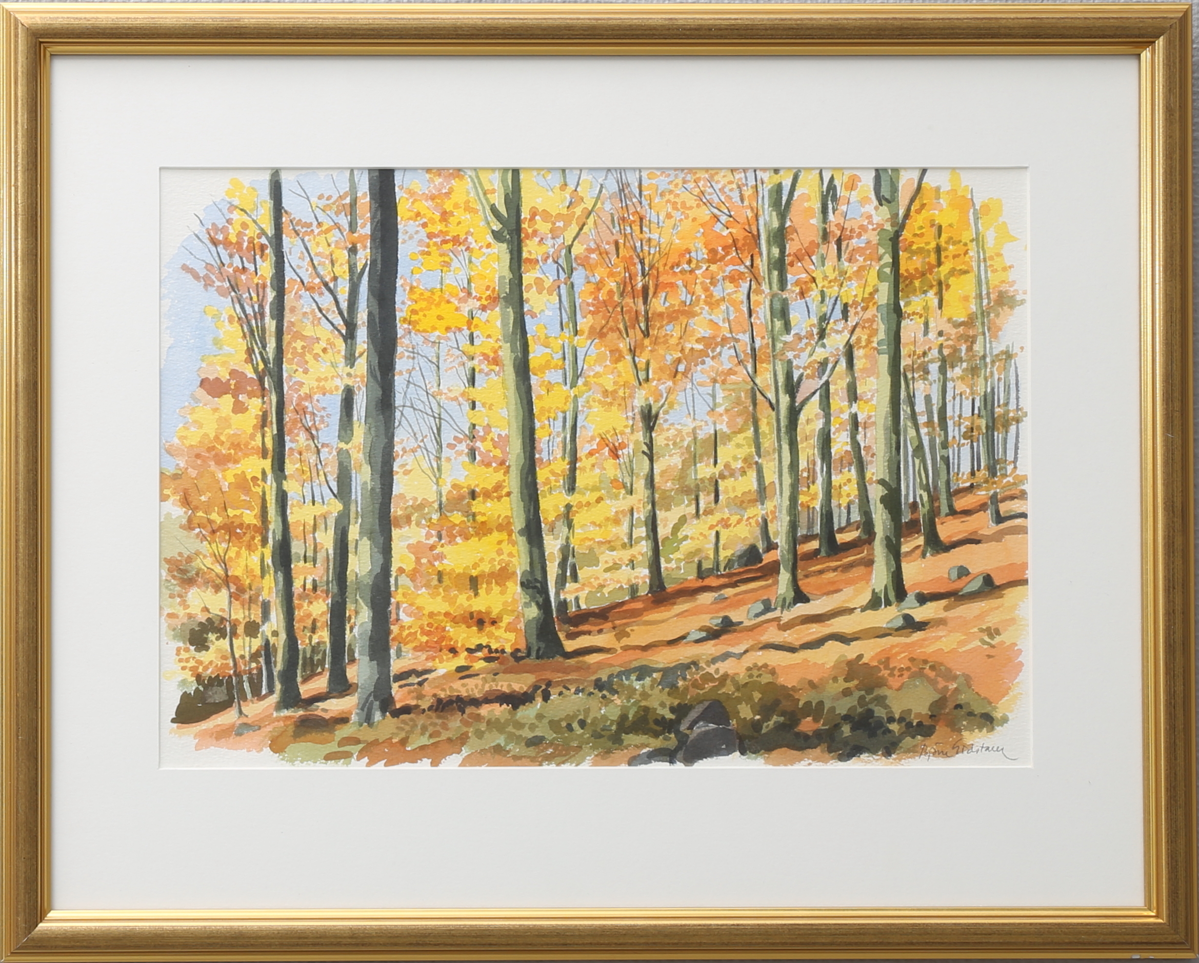 291584. BJÖRN GIDSTAM. Höstskog. Akvarell, signerad.