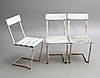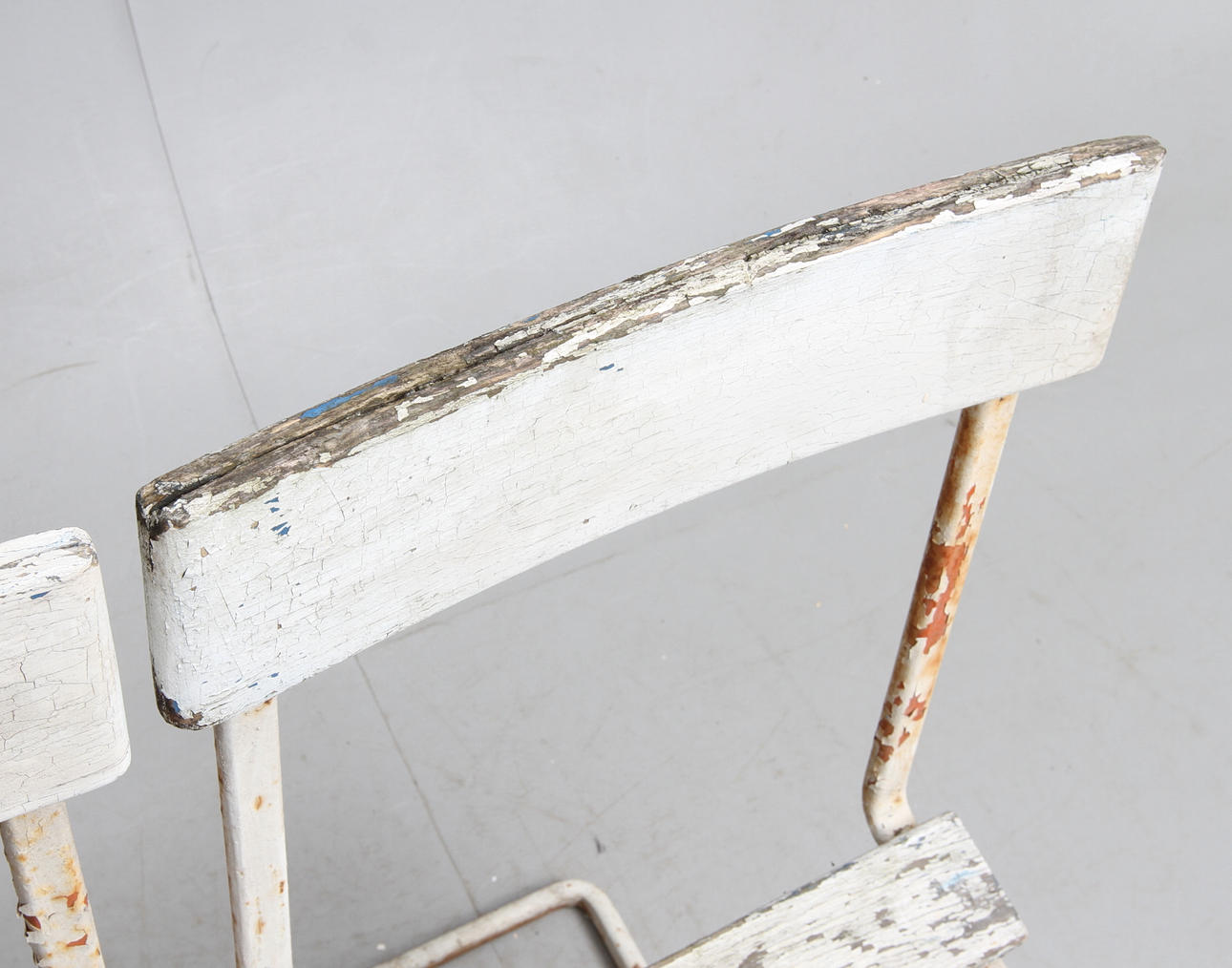 Vitmålad metall och träspjälor.