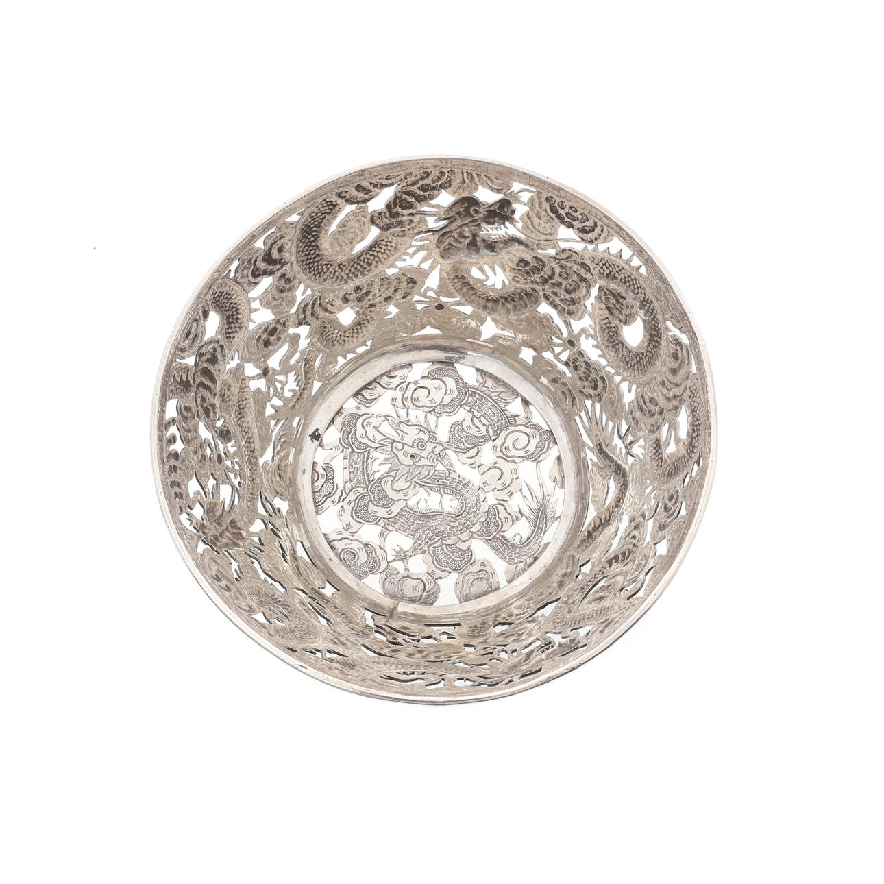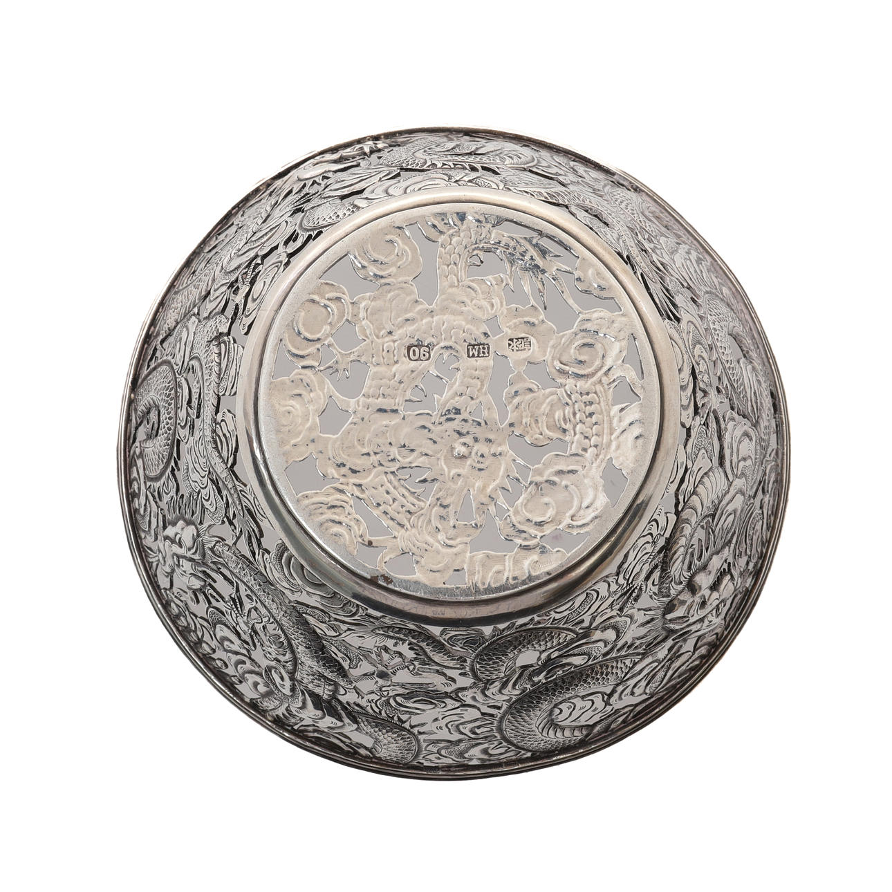 EN KINESISK EXPORT SILVER CIRKULÄR SKÅL, WANG HING & CO.