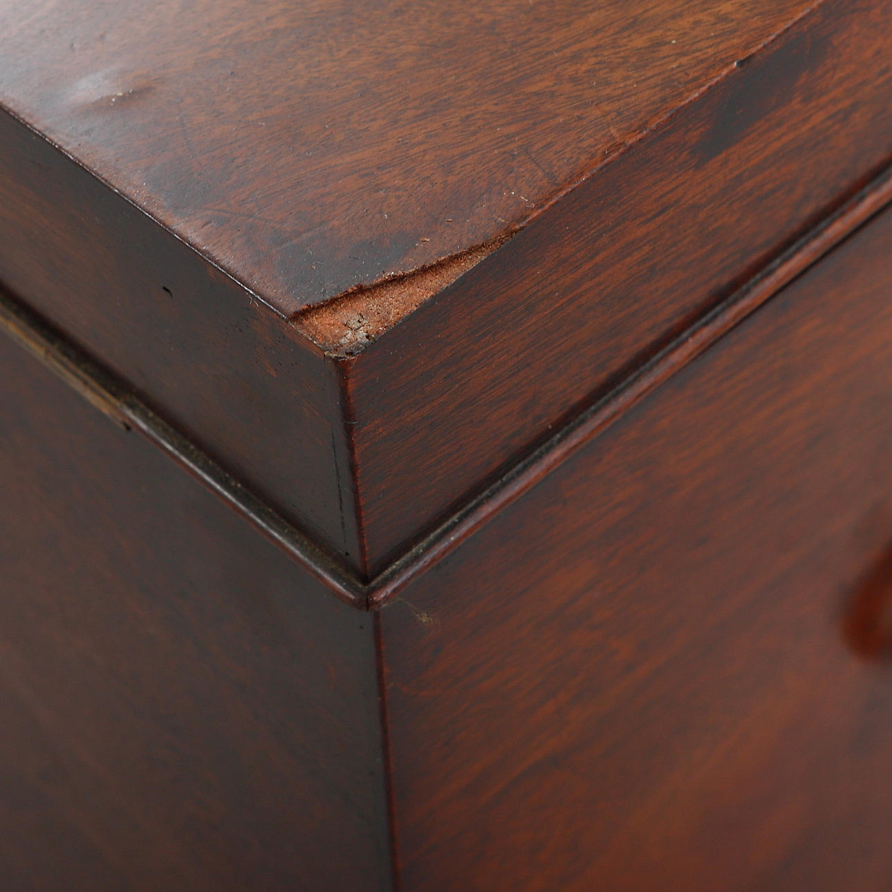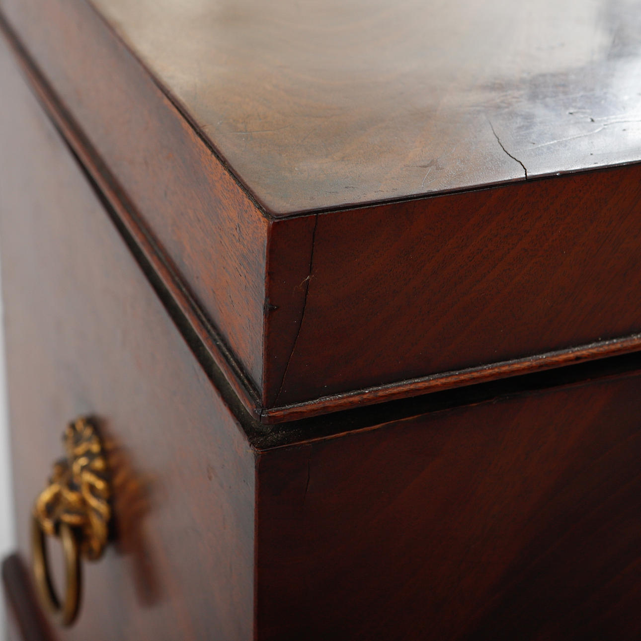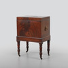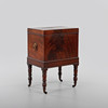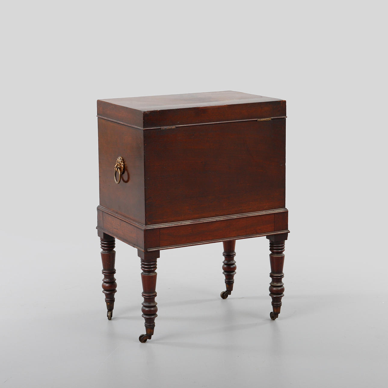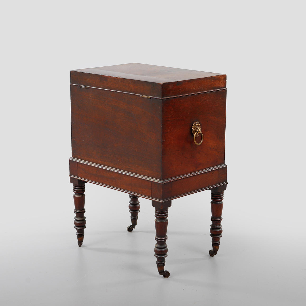 Mahogny, mässingsbeslag i form av lejon maskaroner. Inredning för flaskor. Längd ca 46, bredd ca 33, höjd ca 68 cm.