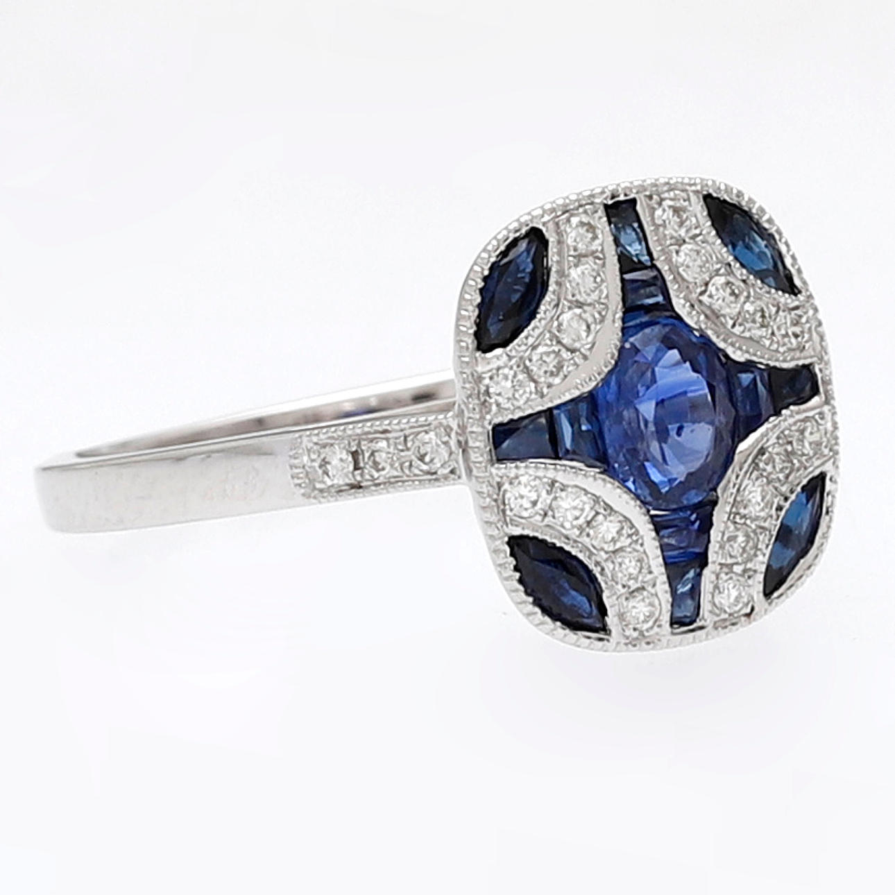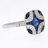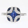 18K vitguld, briljantslipade diamanter, ca 0.14 ct. samt safirer storlekar oval, markis, trapets och modifierad rektangulär, ca 0.65 ct. Storlek 15/55. 3,4 g.