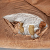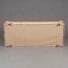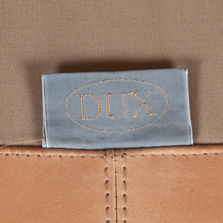 Klädd i brunt läder, klädsel avtagbar och utbytbar.