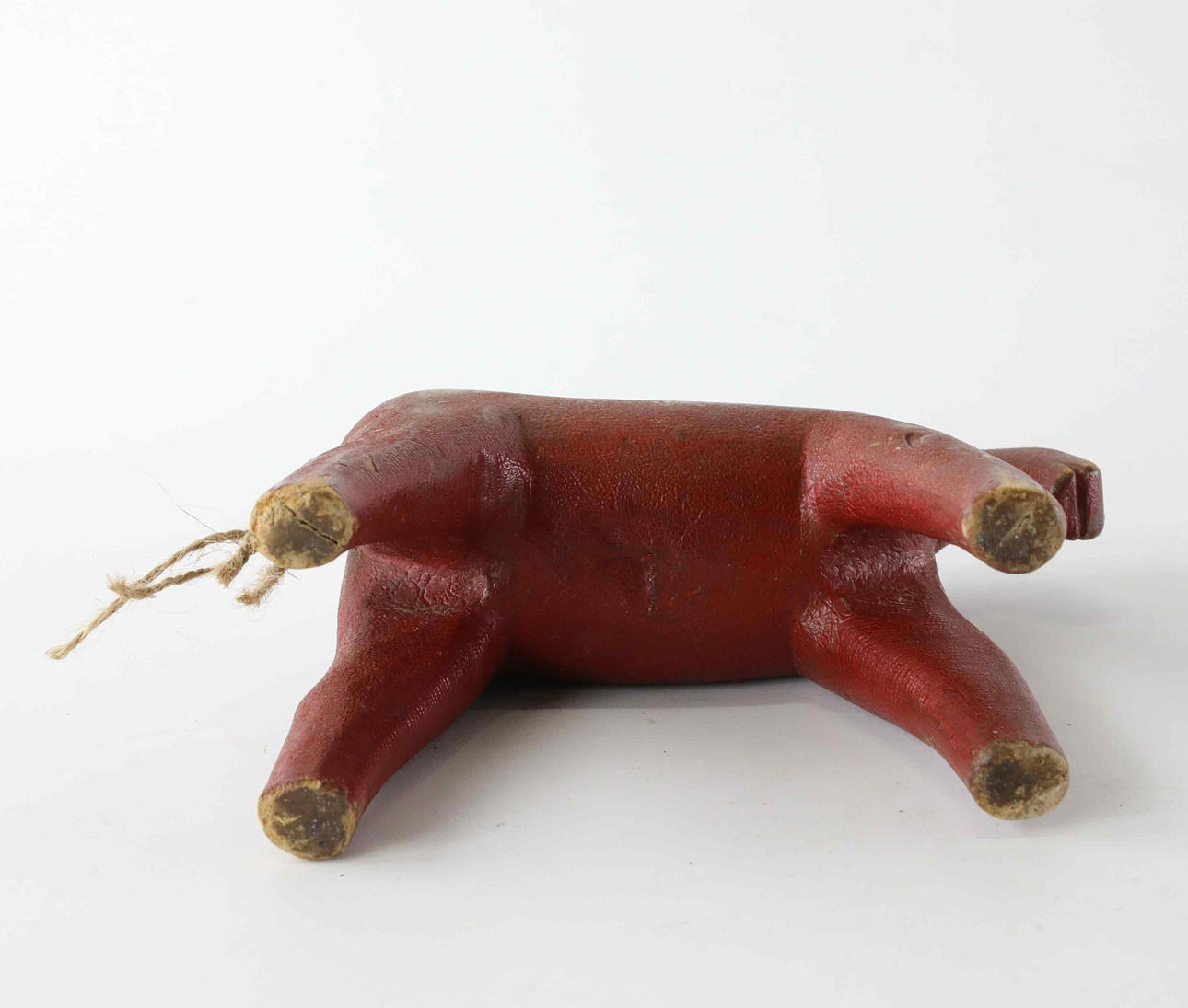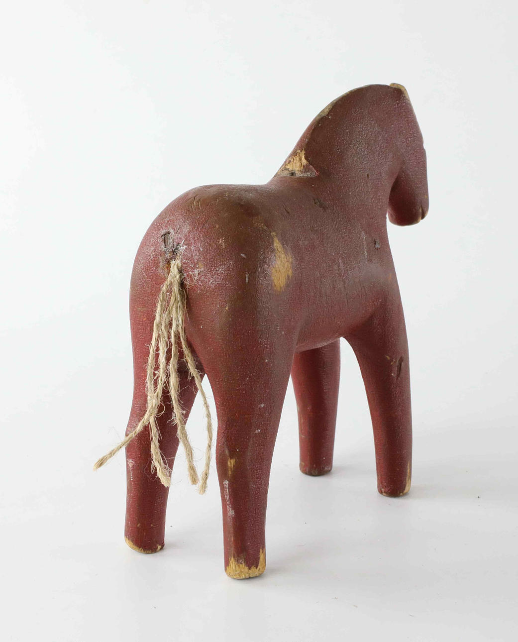 Bemålad, svans av snören. Höjd 16 cm Längd ca 15 cm.