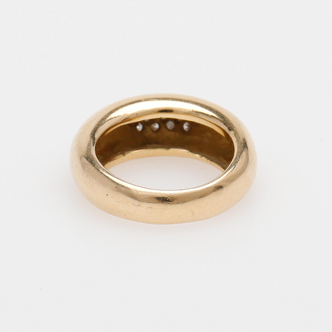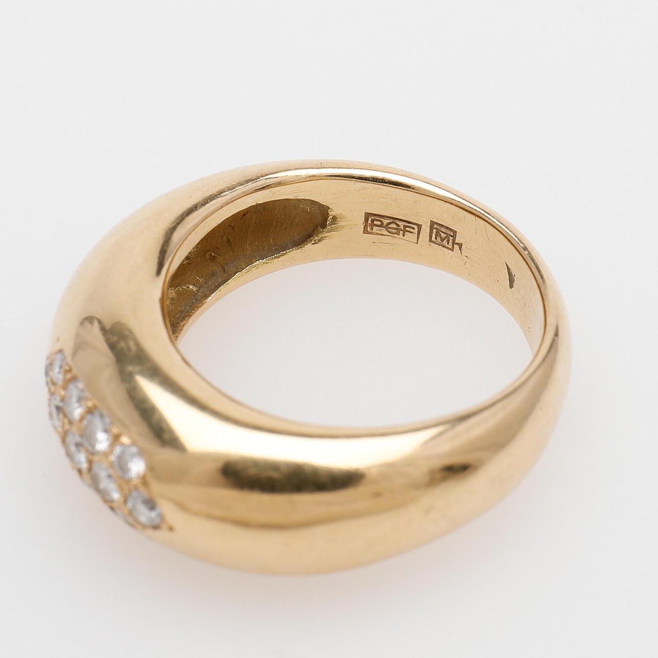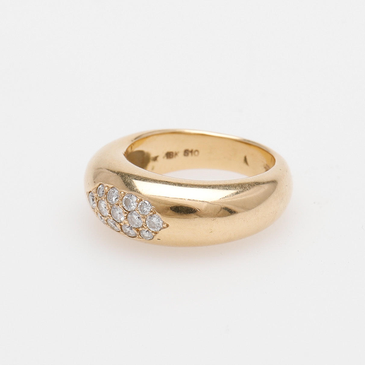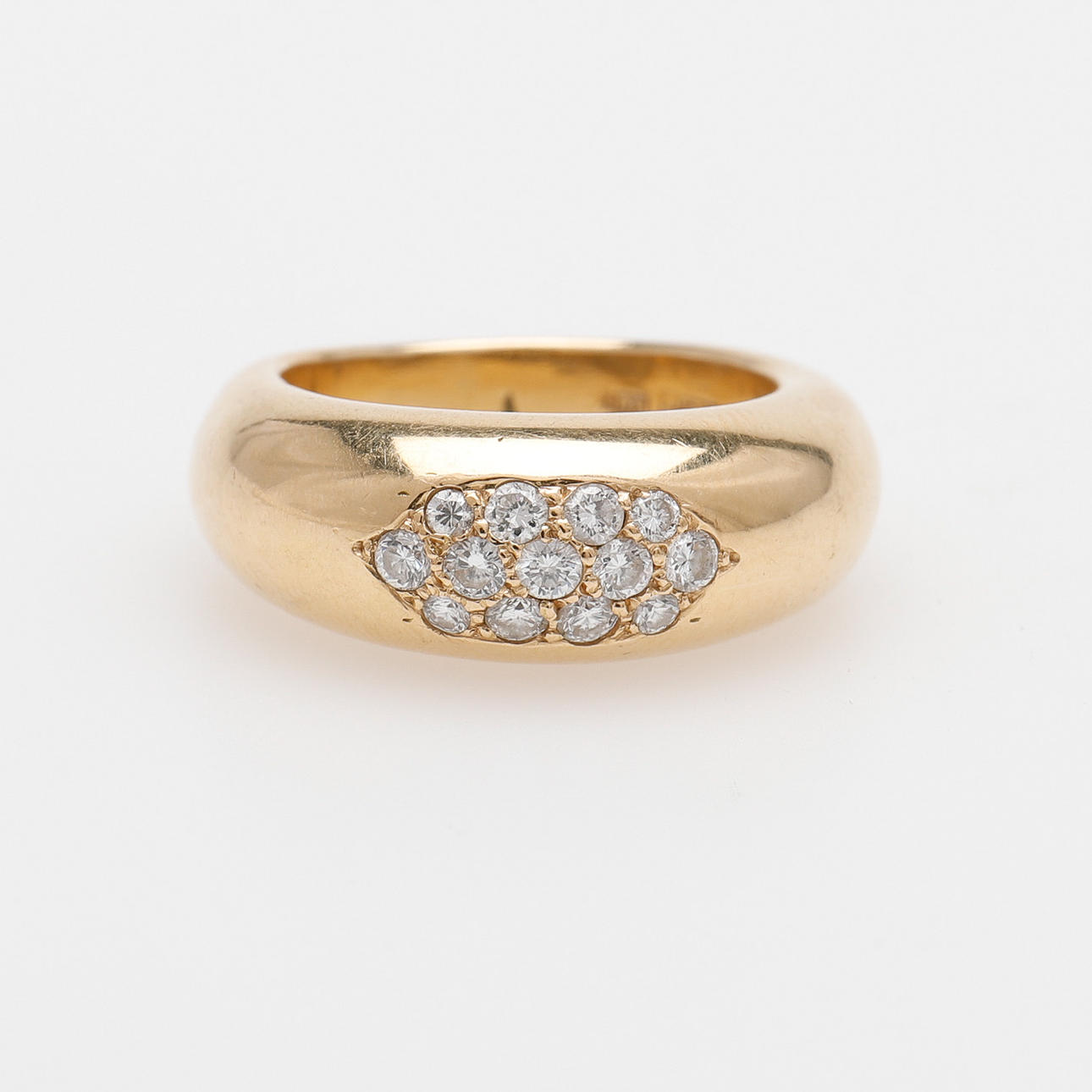 13 små briljantslipade diamanter fattade i ringskena av 18k guld, stämplad Malmö 1992, storlek 17, vikt 13,9 gram.