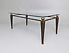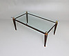 Patinerat metallunderrede. Fasettslipad glasskiva. Längd, 133, bredd 75, höjd 53 cm.